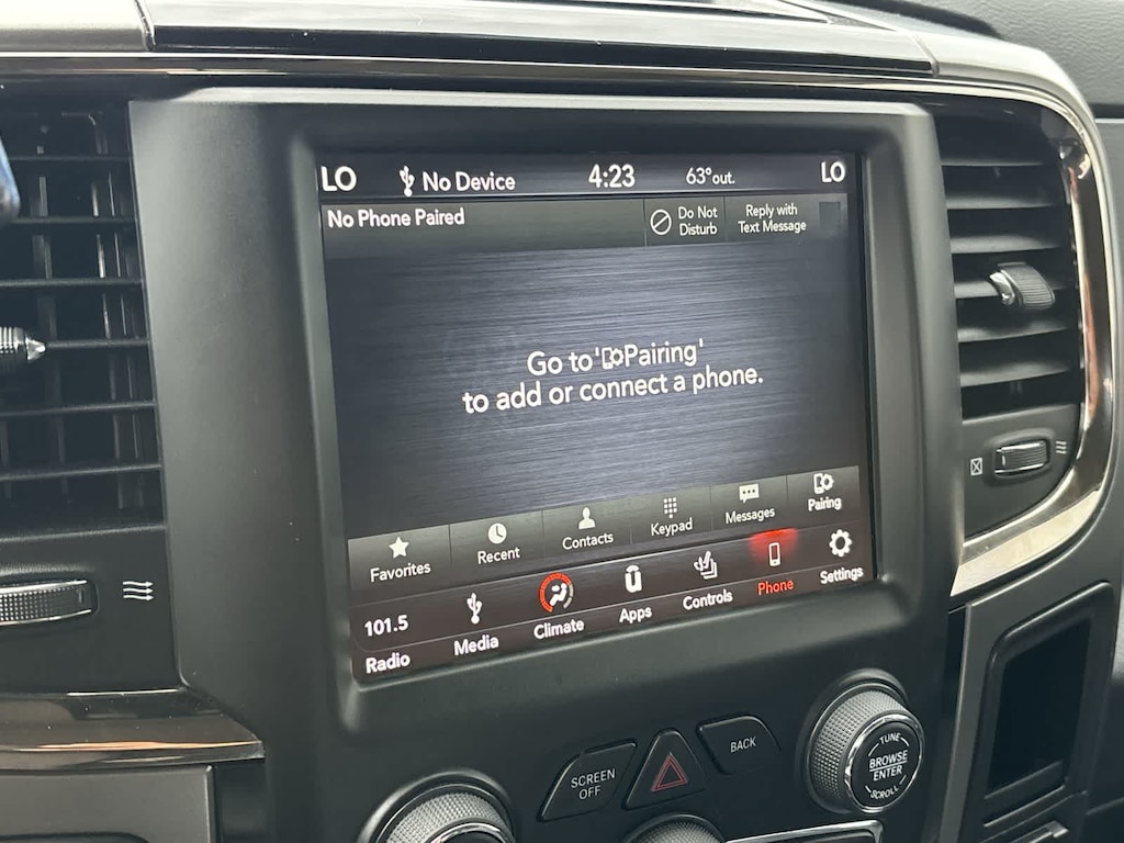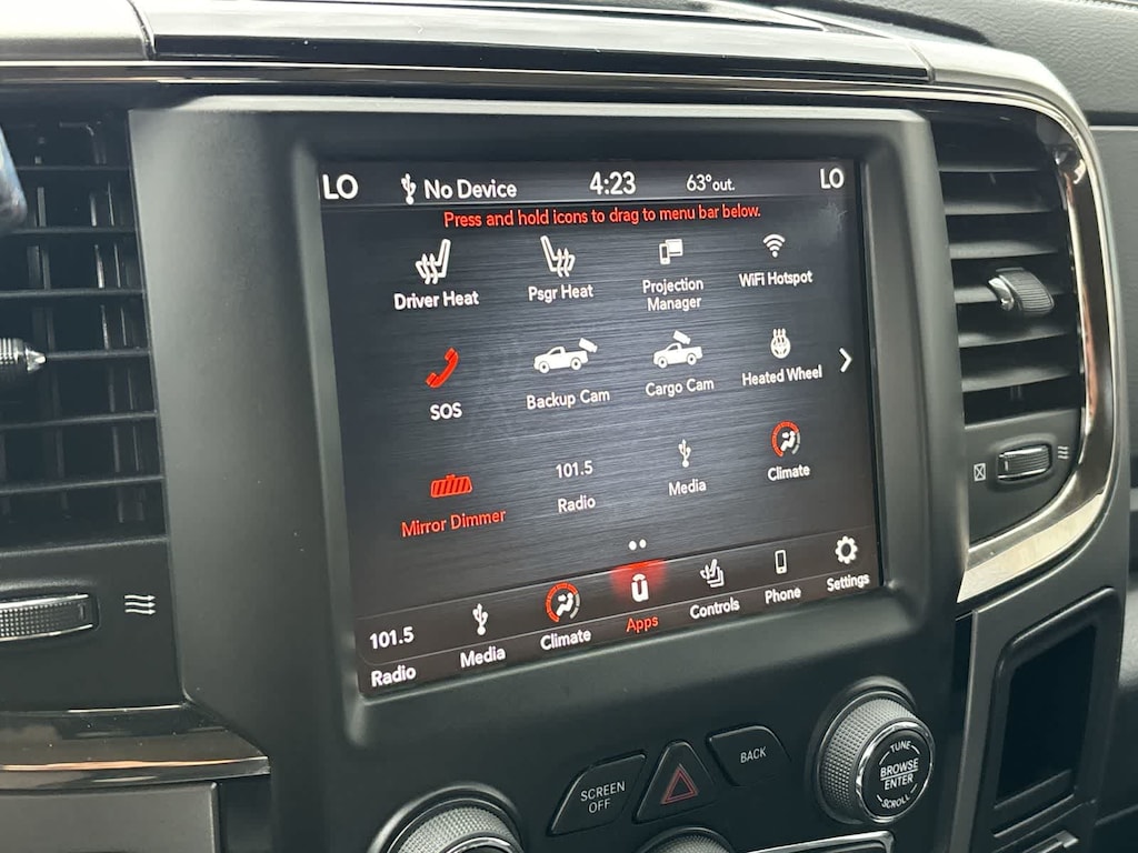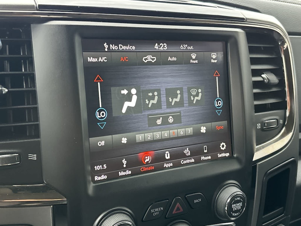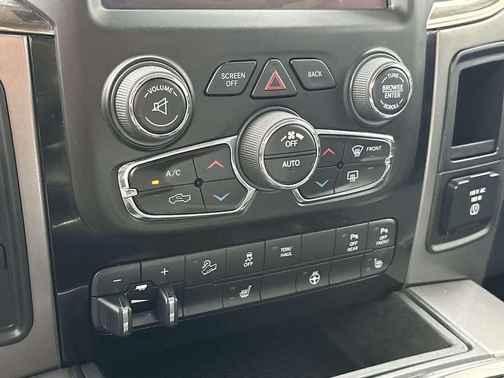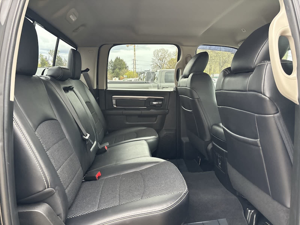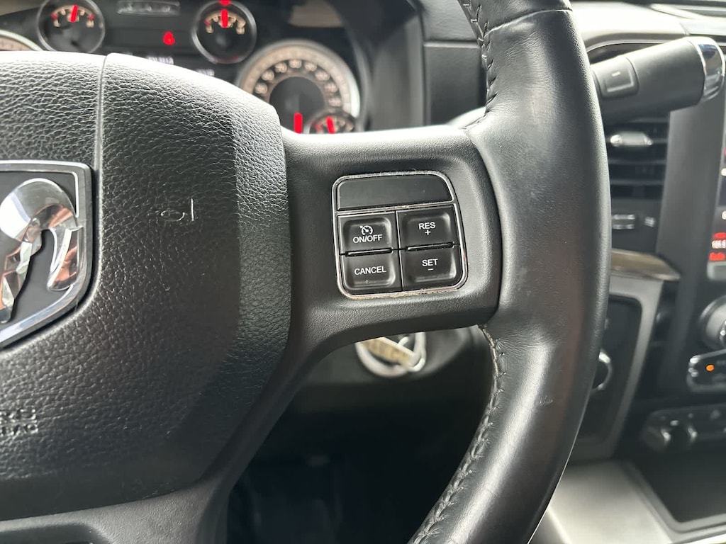 SPORT APPEARANCE GROUP Body-Color Grille w/RAM, Black Power Fold-Away Mirrors, Black Headlamp Bezels, Body Color Door Handles, Painted Front Bumper, Painted Rear Bumper, Front Performance Tuned Shock Absorbers, Auto Dim Exterior Mirrors, Heated Front Seats, Heated Steering Wheel, Highline Door Trim Panel, Black Painted Exterior Mirrors, Exterior Mirrors w/Supplemental Signals, Exterior Mirrors Courtesy Lamps, Body Color Fender Flares, Rear Performance Tuned Shock Absorbers, LED Interior Lighting, Power Folding Mirrors, Power Adjust 10-Way Driver Seat, Instrument Panel Premium Bezel, ParkSense Front/Rear Park Assist System, LUXURY GROUP Rear View Auto Dim Mirror, Leather Wrapped Steering Wheel, Exterior Mirrors w/Supplemental Signals, Rear Dome w/On/Off Switch Lamp, LED Bed Lighting, Steering Wheel Mounted Audio Controls, Exterior Mirrors Courtesy Lamps, Glove Box Lamp, Auto Dim Exterior Mirrors, Universal Garage Door Opener, Heated Front Seats, Heated Steering Wheel, Power Folding Mirrors, Power Heated Fold-Away Mirrors, Sun Visors w/Illuminated Vanity Mirrors, Electroluminescent Instrument Cluster, Overhead Console w/Garage Door Opener, RADIO: UCONNECT 4C W/8.4 DISPLAY Google Android Auto®, SiriusXM Satellite Radio, USB Host Flip, HD Radio, Media Hub (2 USB, AUX), For Details Visit DriveUconnect.com, Integrated Center Stack Radio, Integrated Voice Command w/Bluetooth®, 1-Year SiriusXM Guardian Trial, Air Conditioning ATC w/Dual Zone Control, GPS Antenna Input, 8.4 Touchscreen Display, Apple CarPlay®, SPRAY IN BEDLINER, OFF ROAD PACKAGE Front Performance Tuned Shock Absorbers, Tow Hooks, Offroad Decal, Transfer Case Skid Plate Shield, Rear Performance Tuned Shock Absorbers, ENGINE: 6.4L HEAVY DUTY V8 HEMI W/MDS 11.50 Single Wheel Rear Axle, 180 Amp Alternator, GVWR: 10,000 lbs, BLACK TUBULAR SIDE STEPS, WHEELS: 20 X 8.0 BLACK PAINTED ALUMINUM Black Wheel Center Hub, BLACK, CLOTH BUCKET SEATS Power Lumbar Adjust, 115V Auxiliary Power Outlet, Bucket Seats, High Back Seats, Rear 60/40 Split Folding Seat, Folding Flat Load Floor Storage, Power Adjust 10-Way Driver Seat, Instrument Panel Premium Bezel, Full Length Upgraded Floor Console, TRANSMISSION: 6-SPEED AUTOMATIC (66RFE) (STD). Ram Big Horn with Brilliant Black Crystal Pearlcoat exterior and Black interior features a 8 Cylinder Engine with 410 HP at 5600 RPM*.