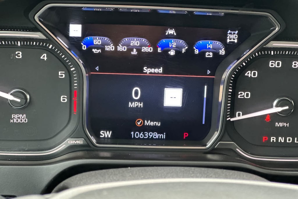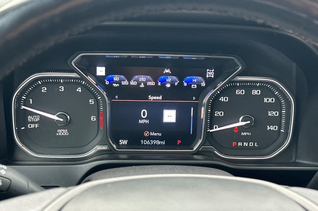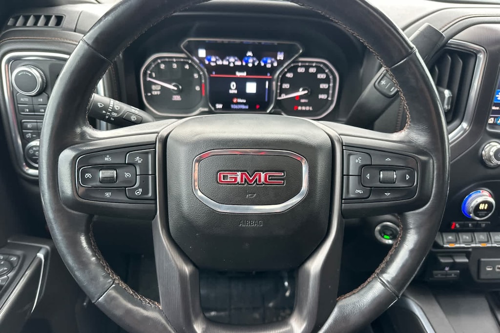 ENGINE, 6.2L ECOTEC3 V8 (420 hp [313 kW] @ 5600 rpm, 460 lb-ft of torque [624 Nm] @ 4100 rpm); featuring all-new Dynamic Fuel Management that enables the engine to operate in 17 different patterns between 2 and 8 cylinders, depending on demand, to optimize power delivery and efficiency, TECHNOLOGY PACKAGE includes (UV2) HD Surround Vision, (DRZ) Rear Camera Mirror, full display and (UV6) Multi-color 15 Diagonal Head-Up Display Includes (UHS) 8 Digital Driver information Center and (S4X) dealer-installed Black mirror caps, LPO. AT4 PREFERRED PACKAGE includes (UG1) Universal Home Remote, (A48) rear sliding power window, (IOT) 8 diagonal Premium GMC Infotainment with navigation, (UQA) Bose Premium Audio System and (K4C) Wireless Charging, SUNROOF, POWER, WHEELS, 20 X 9 (50.8 CM X 22.9 CM) MULTI-DIMENSIONAL POLISHED ALUMINUM, DRIVER ALERT PACKAGE I includes (UD5) Front and Rear Park Assist, (UKC) Lane Change Alert with Side Blind Zone Alert and (UFG) Rear Cross Traffic Alert (Includes Perimeter Lighting. DRIVER ALERT PACKAGE II includes (UEU) Forward Collision Alert, (UHX) Lane Keep Assist/Lane Departure Warning, (UHY) Low Speed Forward Automatic Braking, (UKJ) Front Pedestrian Braking, (TQ5) IntelliBeam headlamps and (UE4) Following Distance Indicator Includes (HS1) Safety Alert Seat. AUDIO SYSTEM, PREMIUM GMC INFOTAINMENT SYSTEM WITH NAVIGATION AND 8 DIAGONAL COLOR TOUCH-SCREEN, INCLUDES MULTI-TOUCH DISPLAY, AM/FM STEREO Bluetooth® streaming audio for music and most phones; featuring Android Auto® and Apple CarPlay® capability for compatible phones, advanced voice recognition, in-vehicle apps, personalized profiles for infotainment and vehicle settings. Includes greater memory, TRANSMISSION, 10-SPEED AUTOMATIC, ELECTRONICALLY CONTROLLED with overdrive and tow/haul mode. Includes Cruise Grade Braking and Powertrain Grade Braking. GMC AT4 with RED QUARTZ TINTCOAT exterior and JET BLACK WITH KALAHARI ACCENTS interior features a 8 Cylinder Engine with 420 HP at 5600 RPM*.