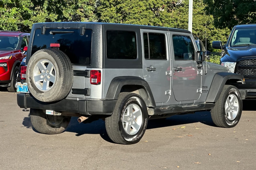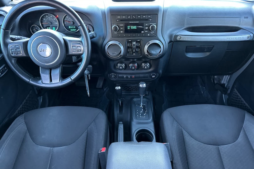 QUICK ORDER PACKAGE 24S Engine: 3.6L V6 24V VVT, Transmission: 5-Speed Automatic (W5A580), Auto Dim Mirror w/Reading Lamp, Front 1-Touch Down Power Windows, Power Heated Mirrors, Wheels: 17 x 7.5 Aluminum, Tires: 17, Leather Wrapped Steering Wheel, Chrome/Leather Wrapped Shift Knob, Power Convenience Group, Deep Tint Sunscreen Windows, Security Alarm, Power Locks, Remote Keyless Entry, TRANSMISSION: 5-SPEED AUTOMATIC (W5A580) Tip Start, Hill Descent Control, BLACK 3-PIECE HARD TOP Freedom Panel Storage Bag, Rear Window Defroster, Rear Window Wiper/Washer, Tinted Rear Quarter & Liftgate Windows, Delete Sunrider Soft Top, MAX TOW PACKAGE Class II Receiver Hitch, 3.73 Rear Axle Ratio, Trailer Tow w/4-Pin Connector Wiring, CONNECTIVITY GROUP Vehicle Information Center, Remote USB Port, Uconnect Voice Command w/Bluetooth®, Tire Pressure Monitoring Display, ANTI-SPIN DIFFERENTIAL REAR AXLE, SIRIUS SATELLITE RADIO, For More Info Call 888-539-7474, ENGINE: 3.6L V6 24V VVT (STD). Jeep Sport with Billet Silver Metallic Clearcoat exterior and Black interior features a V6 Cylinder Engine with 285 HP at 6400 RPM*.