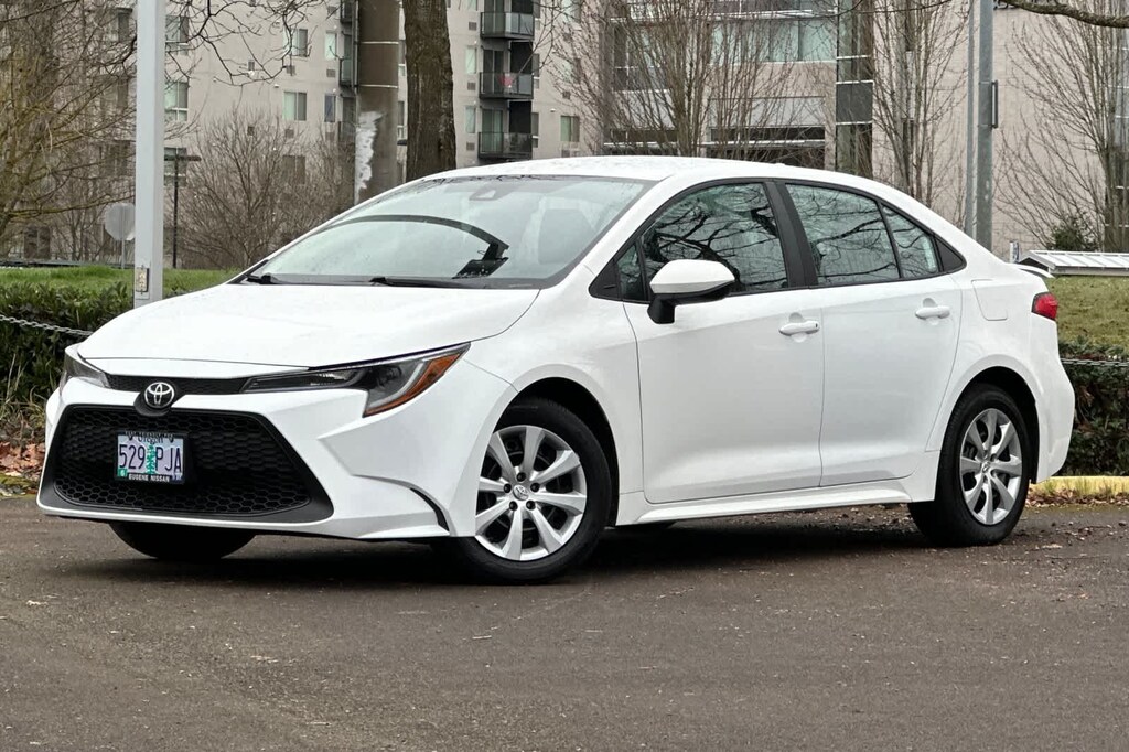 FOUR SEASON FLOOR LINER/MAT PACKAGE (TMS). Toyota LE with White exterior and Black interior features a 4 Cylinder Engine with 139 HP at 6100 RPM*.