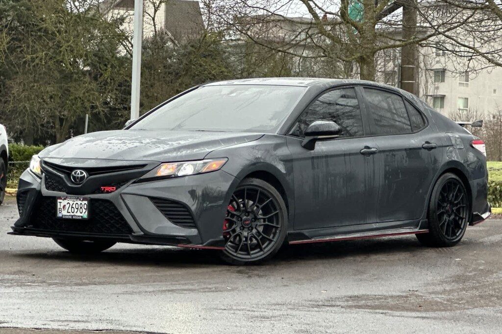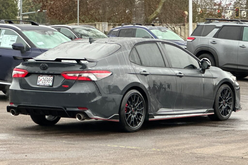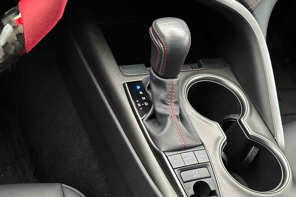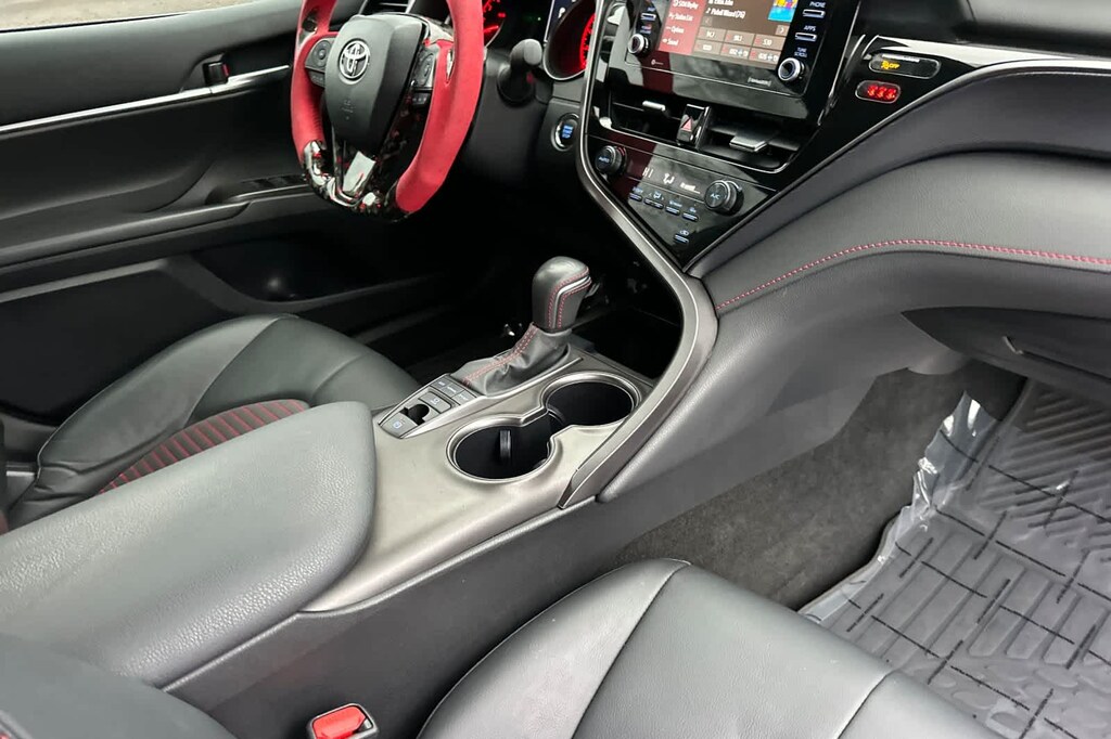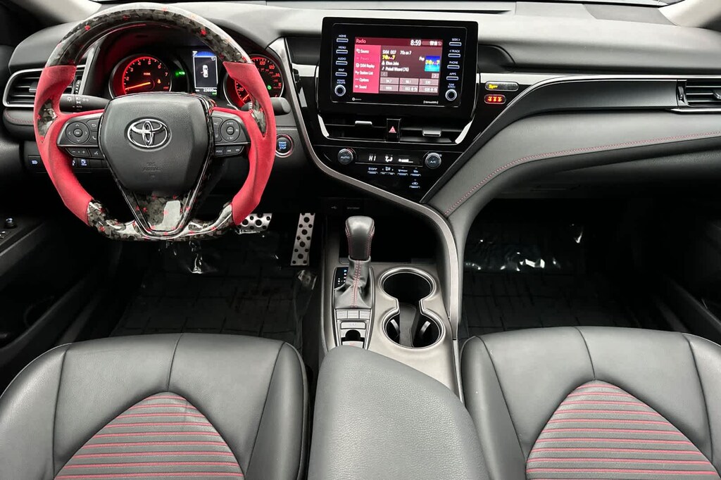 TWO-TONE EXTERIOR COLOR midnight black metallic roof and rear spoiler and black window trim and side-view mirror caps. Toyota TRD V6 with Underground/Midnight Black Metallic exterior and BLACK W/ RED interior features a V6 Cylinder Engine with 301 HP at 6600 RPM*.
