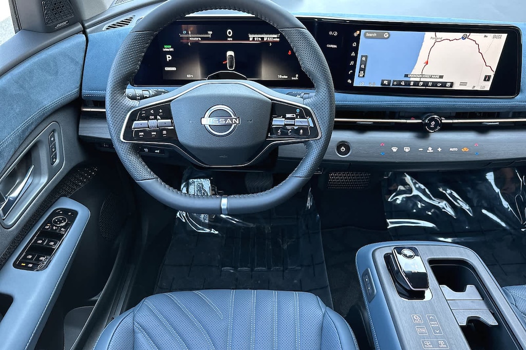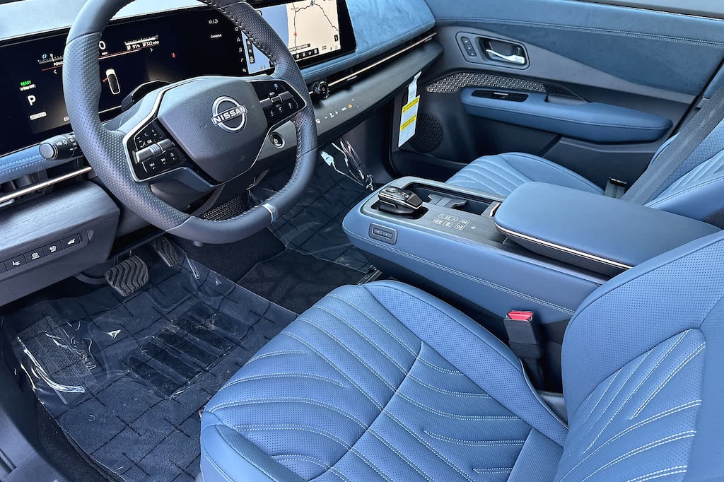 Leather Seats, Navigation, Panoramic Roof Rear Spoiler, MP3 Player, Sunroof, All Wheel Drive, Onboard Communications System, Aluminum Wheels, Keyless Entry. Nissan PLATINUM+ with Blue Gray interior features a Electric Motor.