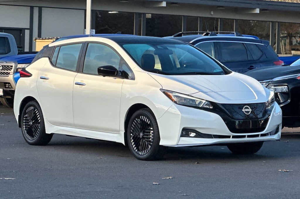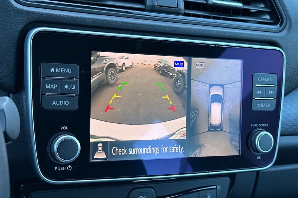 Navigation, Heated Driver Seat, Back-Up Camera. Rear Spoiler, MP3 Player, Onboard Communications System, Aluminum Wheels, Keyless Entry, Steering Wheel Controls, Child Safety Locks. Nissan SV PLUS with Pearl White Tricoat exterior and Black interior features a Electric Motor.