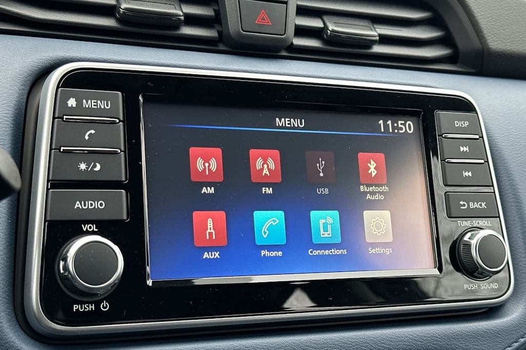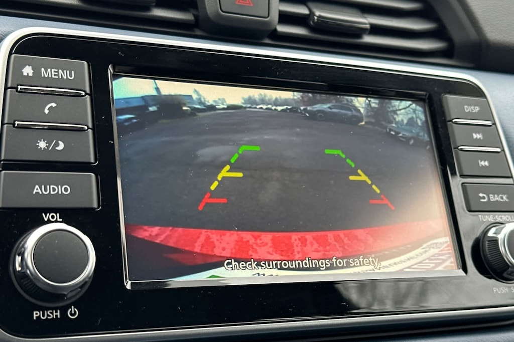 Back-Up Camera, iPod/MP3 Input, Bluetooth®. MP3 Player, Aluminum Wheels, Keyless Entry, Remote Trunk Release, Child Safety Locks, Steering Wheel Controls, Electronic Stability Control. Nissan SV with Scarlet Ember Tintcoat exterior and Graphite interior features a 4 Cylinder Engine with 122 HP at 6000 RPM*.