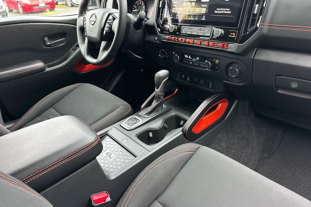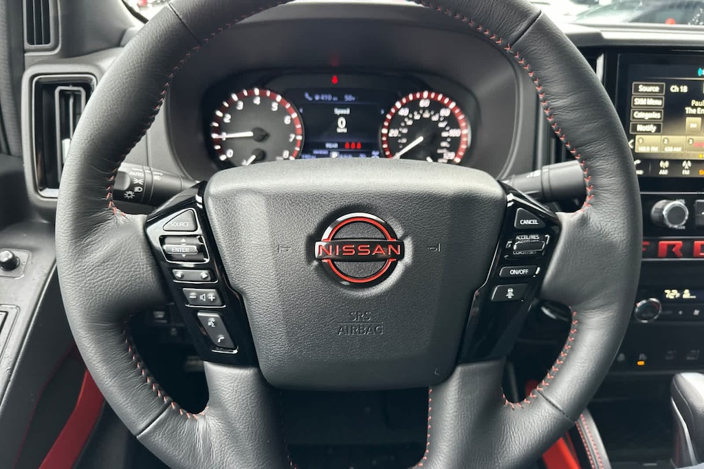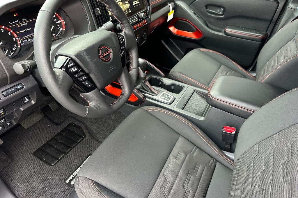 PRO-4X CONVENIENCE PACKAGE Bed Under-Rail Lighting, Remote Engine Starter, 120V Power Outlet in Bed, Heated Front Seats, Intelligent Around View Monitor (I-AVM), Moving Object Detection (MOD) and enhanced off-road mode, Utili-Track System, 2 adjustable tie-down cleats, Spray-In Bedliner, Trailer Hitch w/Wiring Harness, Heated Steering Wheel, Wireless Charging for Personal Devices, Heated Outside Mirrors, 120V Power Outlet in Rear Center Console, OFF-ROAD STYLE STEP RAILS. Nissan PRO-4X with Boulder Gray Pearl exterior and Charcoal w/Lava Red St interior features a V6 Cylinder Engine with 310 HP at 6400 RPM*.