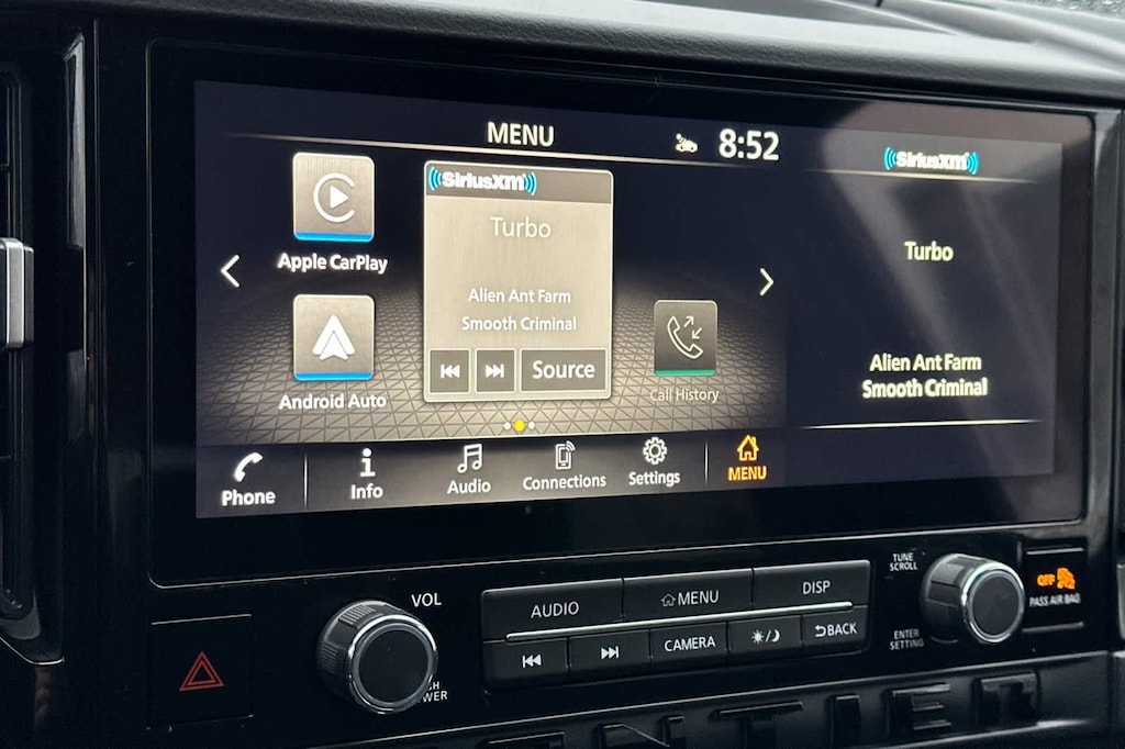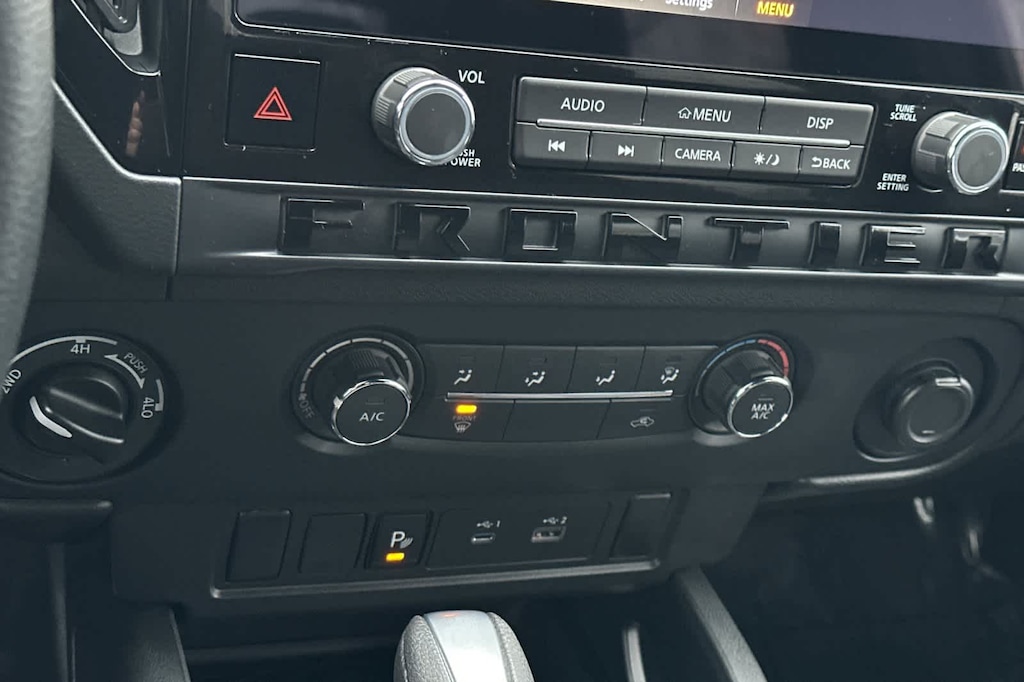 DROP-IN BED LINER & BUMPER STEP, TOW PACKAGE tow hitch and tow harness, DARK ARMOR PACKAGE dark 4x4 badge, unique Dark Armor badge, dark interior finishers (D-rings/HVAC vent/shifter trim/IP lettering), dark headliner and dark interior door handles, Dark FRONTIER Tailgate Lettering, Dark Mirror Caps, Wheels: 17 Dark, Dark Grill Surround/Mesh/Inner Fascia. Nissan SV with Boulder Gray Pearl exterior and Charcoal interior features a V6 Cylinder Engine with 310 HP at 6400 RPM*.