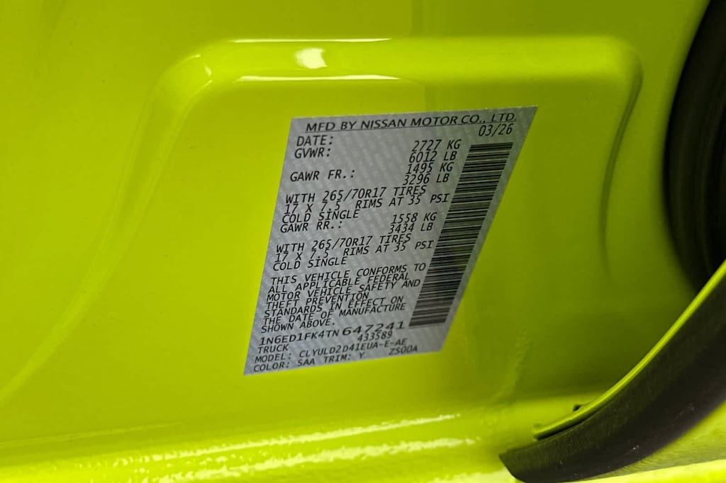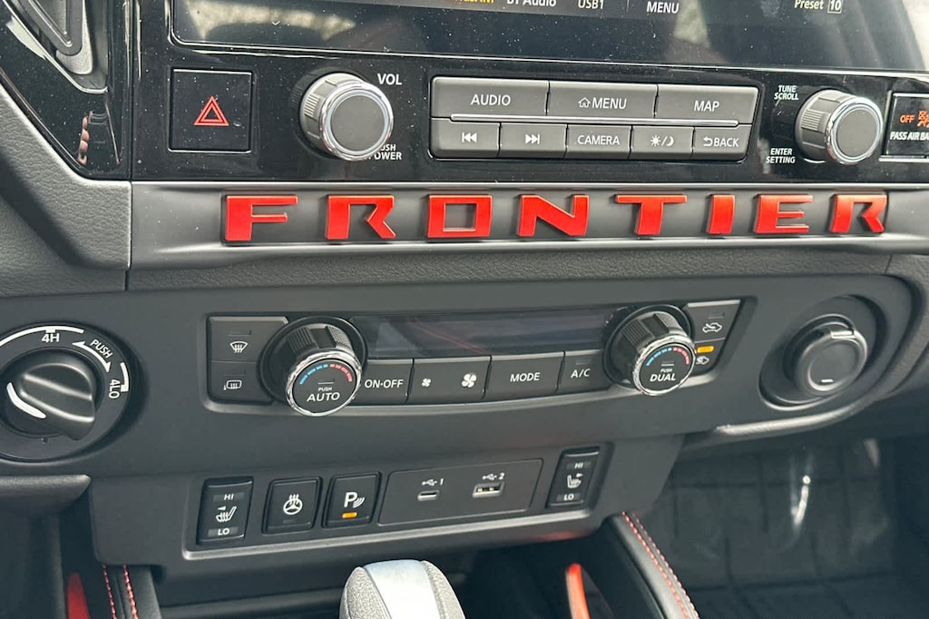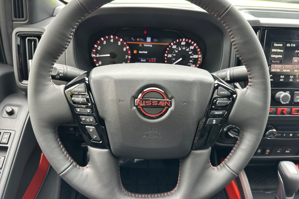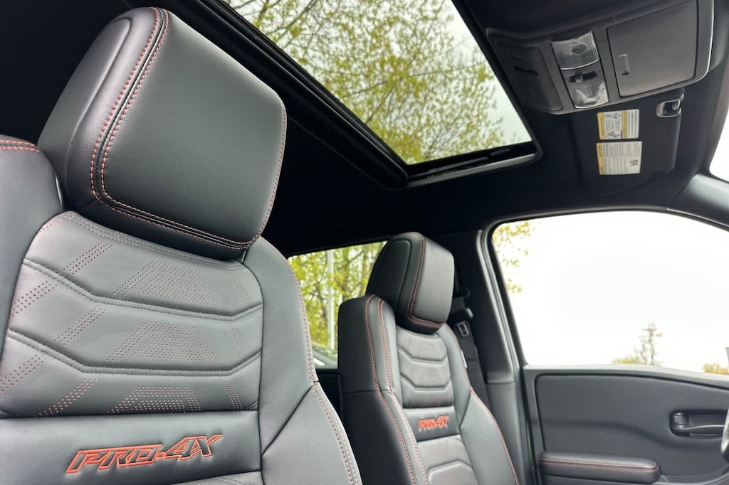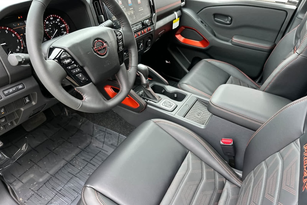 PRO PREMIUM PACKAGE Auto-Dimming Mirror, Nissan Door-to-Door Navigation, Traffic Sign Recognition (TSR), Fender Premium Audio System w/10 Speakers, dual subwoofer, Partial Under-Seat Storage Delete, HomeLink UGDO, Auto-Tilt & Slide Sunroof w/Manual Shade, PRO-4X CONVENIENCE PACKAGE Bed Under-Rail Lighting, Remote Engine Starter, 120V Power Outlet in Bed, Heated Front Seats, Intelligent Around View Monitor (I-AVM), Moving Object Detection (MOD) and enhanced off-road mode, Utili-Track System, 2 adjustable tie-down cleats, Spray-In Bedliner, Trailer Hitch w/Wiring Harness, Heated Steering Wheel, Wireless Charging for Personal Devices, Heated Outside Mirrors, 120V Power Outlet in Rear Center Console, OFF-ROAD STYLE STEP RAILS. Nissan PRO-4X with Citrus Strike exterior and Charcoal w/Lava Red St interior features a V6 Cylinder Engine with 310 HP at 6400 RPM*.