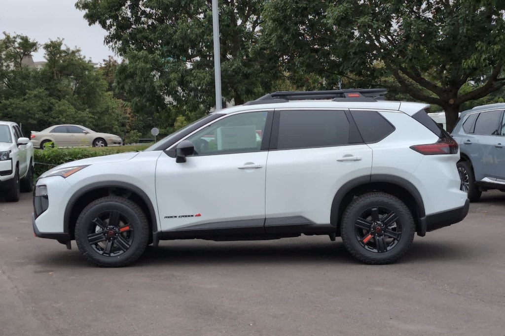BLACK SPLASH GUARDS (SET OF 4) (B92). Nissan Rock Creek with Everest White Pearl Tricoat exterior and Charcoal interior features a 3 Cylinder Engine with 201 HP at 5600 RPM*.