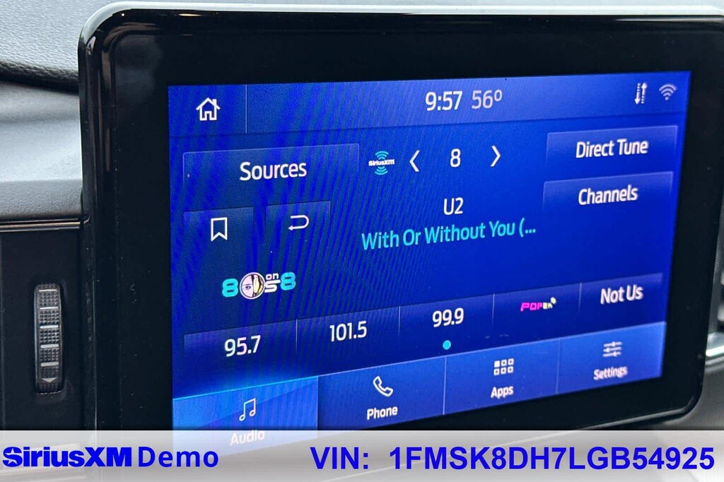 EQUIPMENT GROUP 202A LED Fog Lamps, silver-painted front skid plate elements, Remote Start System, TWIN PANEL MOONROOF, COMFORT PACKAGE 1st & 2nd Row Heated Seats, Heated Steering Wheel, 2ND ROW 35/30/35 BENCH W/E-Z ENTRY & ARMREST E-Z entry is manually activated, TRANSMISSION: 10-SPEED AUTOMATIC W/SELECTSHIFT Active Transmission Warm-Up (ATWU) (STD). Ford XLT with Iconic Silver exterior and Ebony interior features a 4 Cylinder Engine with 300 HP at 5500 RPM*.