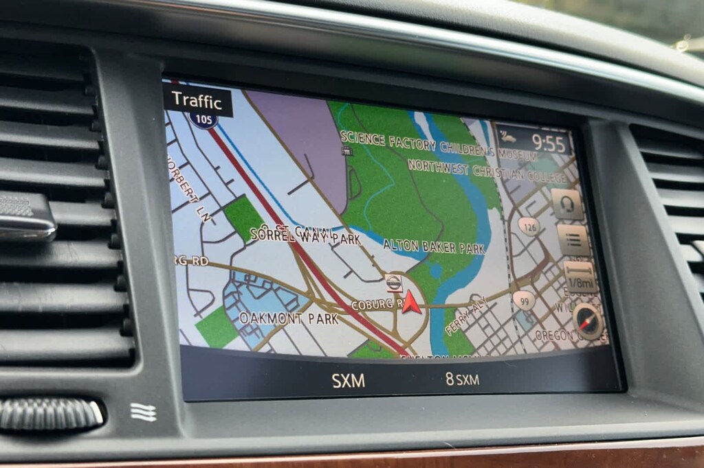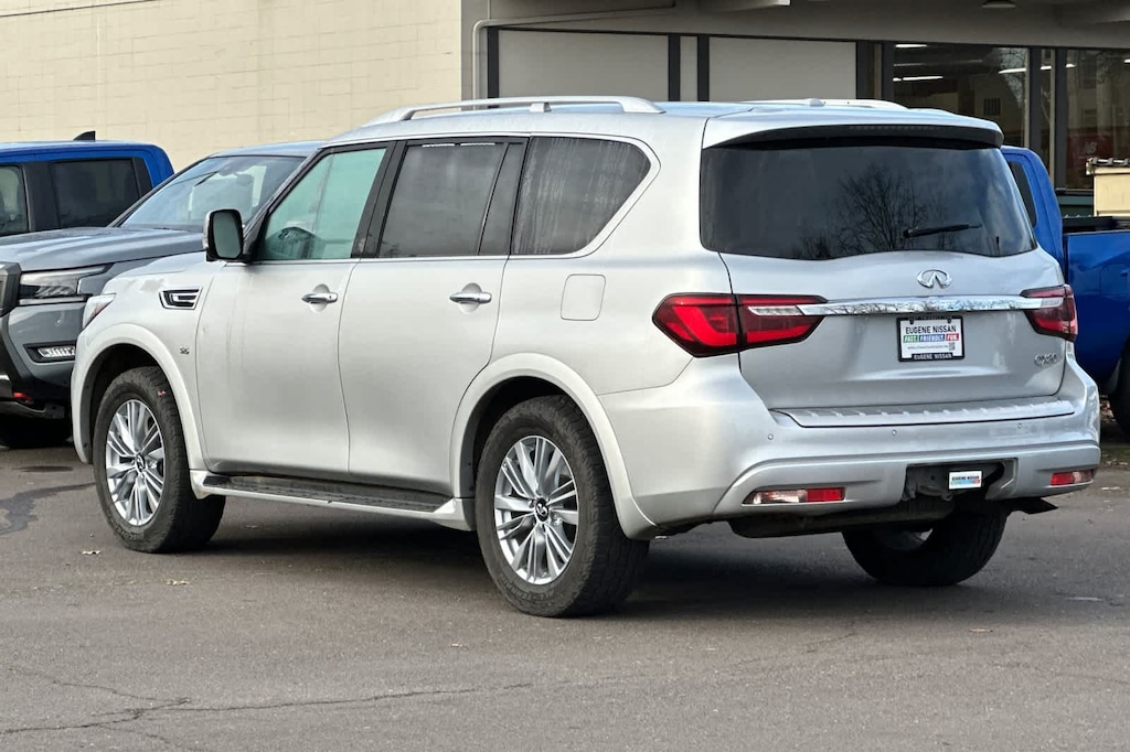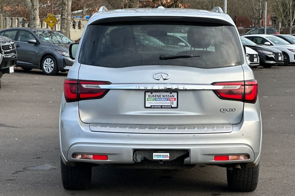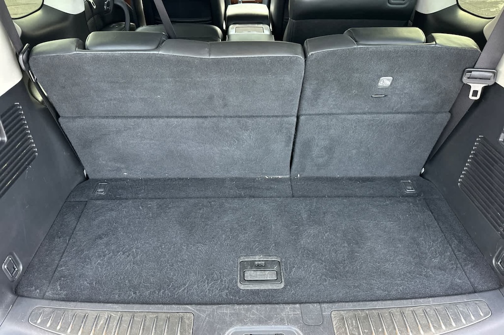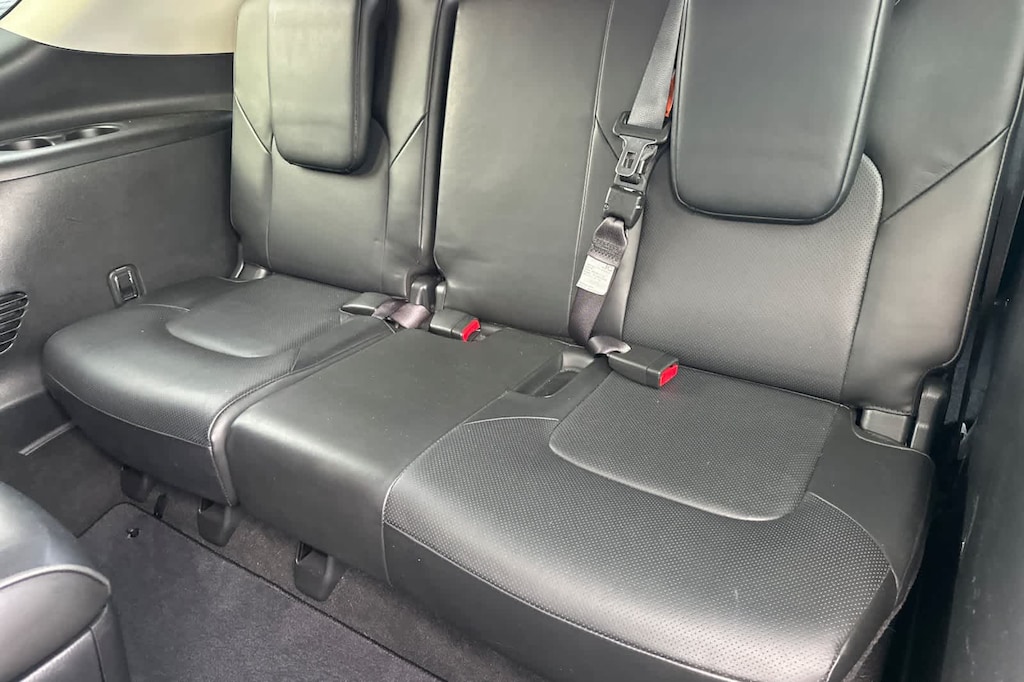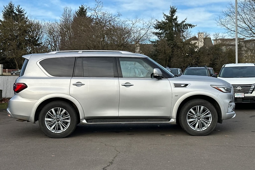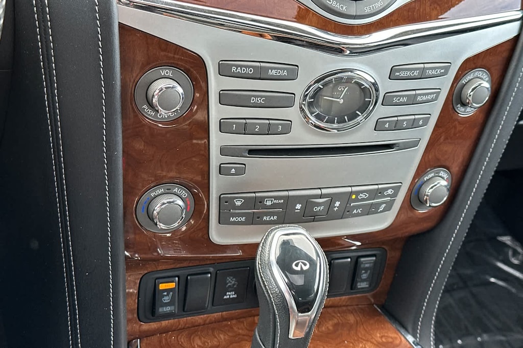 Leather Seats, Third Row Seat, Navigation. Rear Spoiler, MP3 Player, Sunroof, Rear Seat Audio Controls, 4x4, Onboard Communications System, Aluminum Wheels. INFINITI LUXE with Liquid Platinum exterior and Graphite interior features a 8 Cylinder Engine with 400 HP at 5800 RPM*.