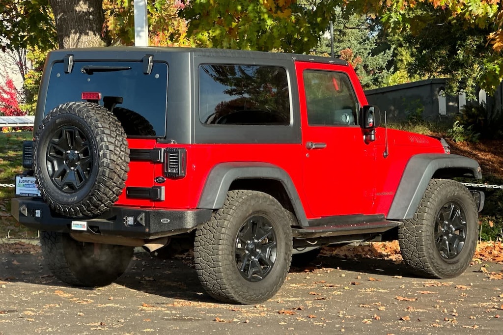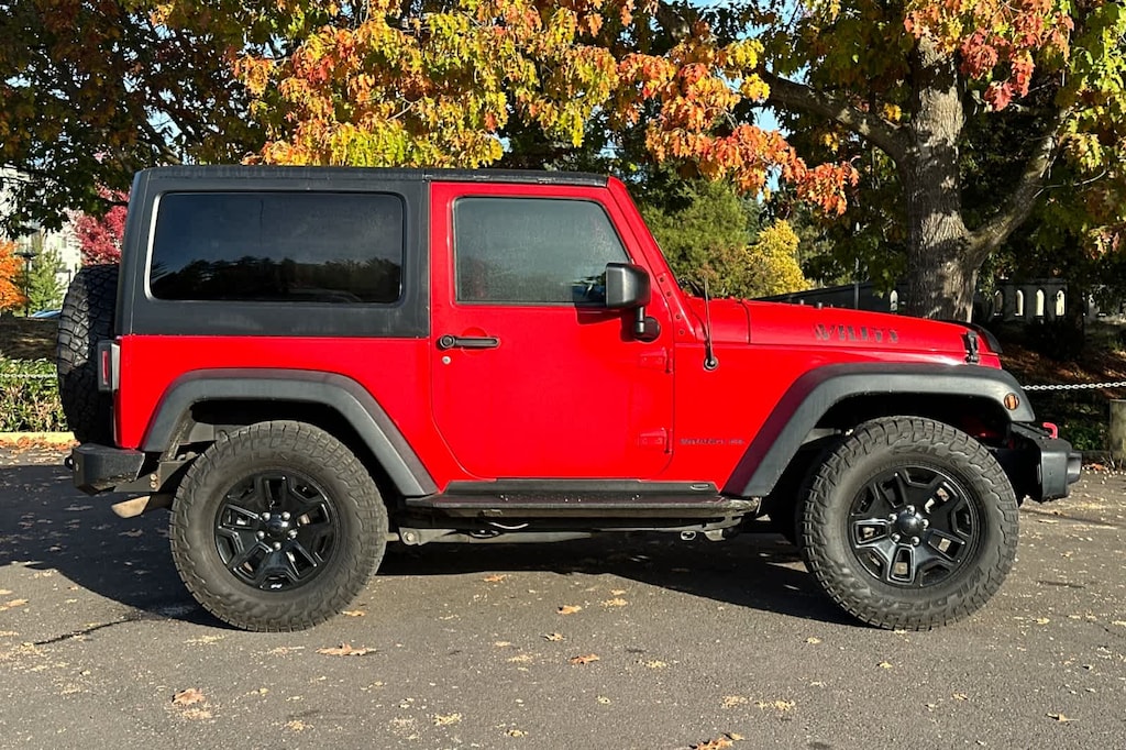 QUICK ORDER PACKAGE 24W WILLYS WHEELER Engine: 3.6L V6 24V VVT, Transmission: 5-Speed Automatic (W5A580), Rear Passenger Assist Handles Kit, Willys Wheeler Package, Black Jeep Grille Badge, For More Info Call 888-539-7474, Air Conditioning, Vehicle Information Center, Remote USB Port, Uconnect Voice Command w/Bluetooth®, Leather Wrapped Steering Wheel, Chrome/Leather Wrapped Shift Knob, Tire Pressure Monitoring Display, 4-Wheel Drive Swing Gate Decal, Willys Wheeler Grille, Willys Hood Decal, Rock Rails, POWER CONVENIENCE GROUP Auto Dim Mirror w/Reading Lamp, Front 1-Touch Down Power Windows, Power Heated Mirrors, Security Alarm, Power Locks, Remote Keyless Entry, TRANSMISSION: 5-SPEED AUTOMATIC (W5A580) Tip Start, Hill Descent Control, BLACK 3-PIECE HARD TOP Freedom Panel Storage Bag, Rear Window Defroster, Rear Window Wiper/Washer, Delete Sunrider Soft Top, ENGINE: 3.6L V6 24V VVT (STD).