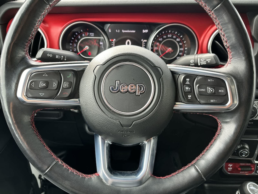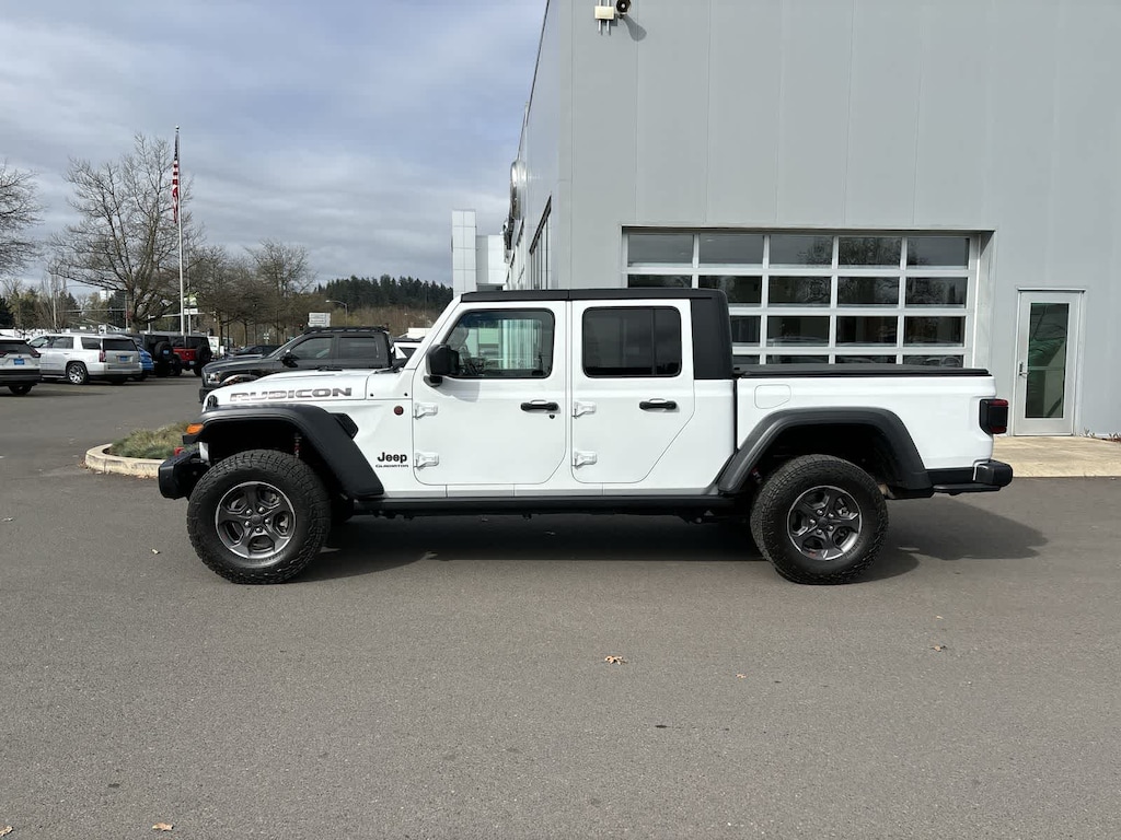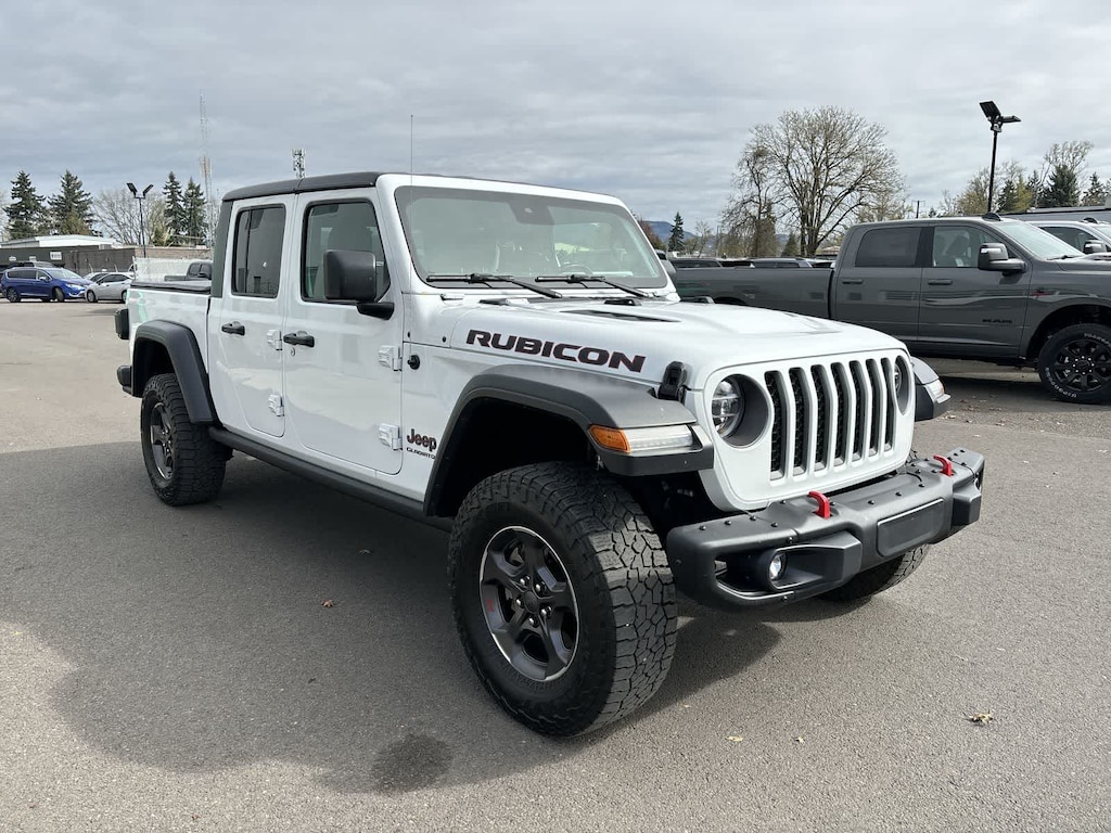 TRANSMISSION: 8-SPEED AUTOMATIC (850RE) Tip Start, Transmission Skid Plate, Selec-Speed Control, 8.4 RADIO & PREMIUM AUDIO GROUP Emergency/Assistance Call, SiriusXM Traffic Plus, Alpine Premium Audio System, HD Radio, Radio: Uconnect 4C Nav w/8.4 Display, Rear View Auto Dim Mirror, For Details, Visit DriveUconnect.com, 1-Year SiriusXM Guardian Trial, SiriusXM Travel Link, BLACK, LEATHER TRIMMED BUCKET SEATS Full Length Floor Console Premium Armrest, Leather Wrapped Park Brake Handle, Leather Wrapped Shift Knob, Premium Door Trim Panel, Rear Armrest w/Cupholder Seat, BLACK 3-PIECE HARD TOP Freedom Panel Storage Bag, Rear Window Defroster, Rear Sliding Window, No Soft Top, LED LIGHTING GROUP Daytime Running Lamps LED Accents, LED Park Turn Lamps, Front LED Fog Lamps, LED Reflector Headlamps, LED Taillamps, COLD WEATHER GROUP Heated Steering Wheel, Heated Front Seats, SAFETY GROUP ParkSense Rear Park Assist System, Blind Spot & Cross Path Detection, ADVANCED SAFETY GROUP Advanced Brake Assist, Full Speed Forward Collision Warning Plus, MOPAR SOFT TRI-FOLD TONNEAU COVER, REMOTE PROXIMITY KEYLESS ENTRY, REMOTE START SYSTEM, SPRAY IN BEDLINER, TRAILER TOW PACKAGE Trailer Hitch Zoom, Class IV Hitch Receiver, Heavy Duty Engine Cooling, 240 Amp Alternator, ENGINE: 3.6L V6 24V VVT UPG I W/ESS (STD). Jeep Rubicon with Bright White Clearcoat exterior and Black interior features a V6 Cylinder Engine with 285 HP at 6400 RPM*.
