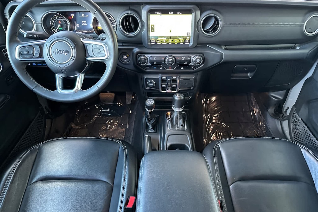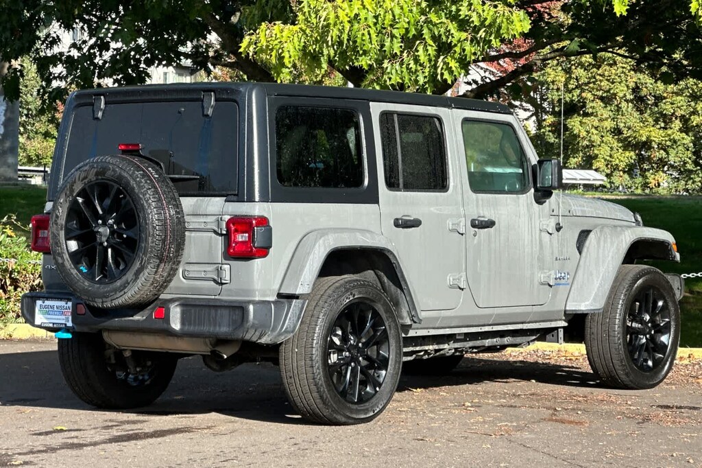BLACK 3-PIECE HARD TOP Freedom Panel Storage Bag, Rear Window Defroster, Rear Window Wiper/Washer, ENGINE: 2.0L I4 DOHC DI TURBO PHEV (STD), TRANSMISSION: 8-SPEED AUTO 8P75PH PHEV (STD). Jeep Sahara with Sting-Gray Clearcoat exterior and Black interior features a 4 Cylinder Engine with 375 HP at 5250 RPM*.