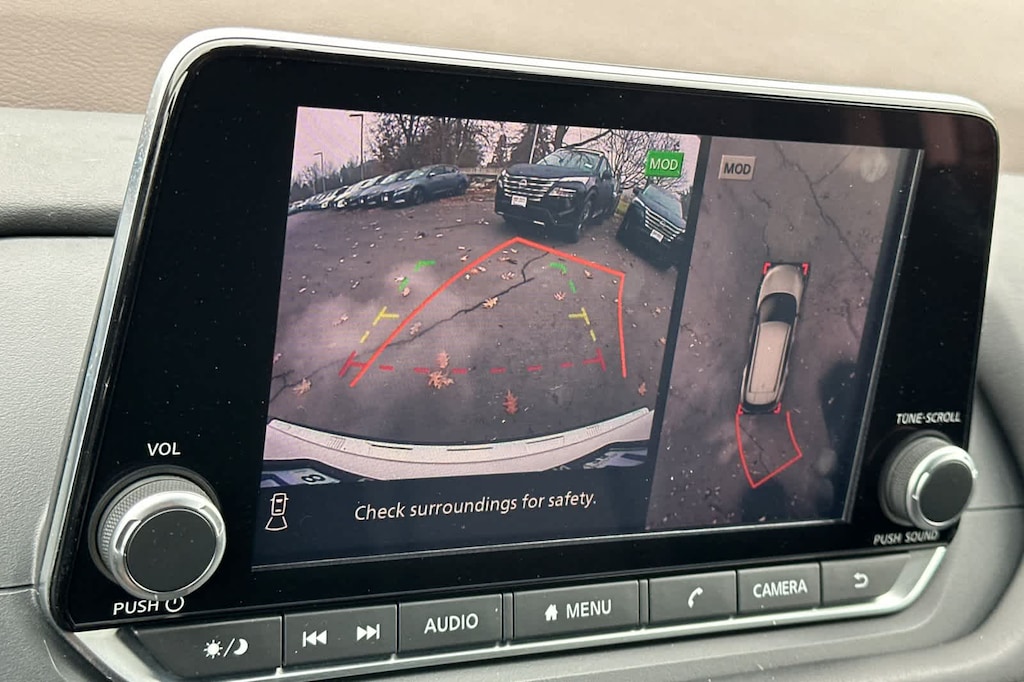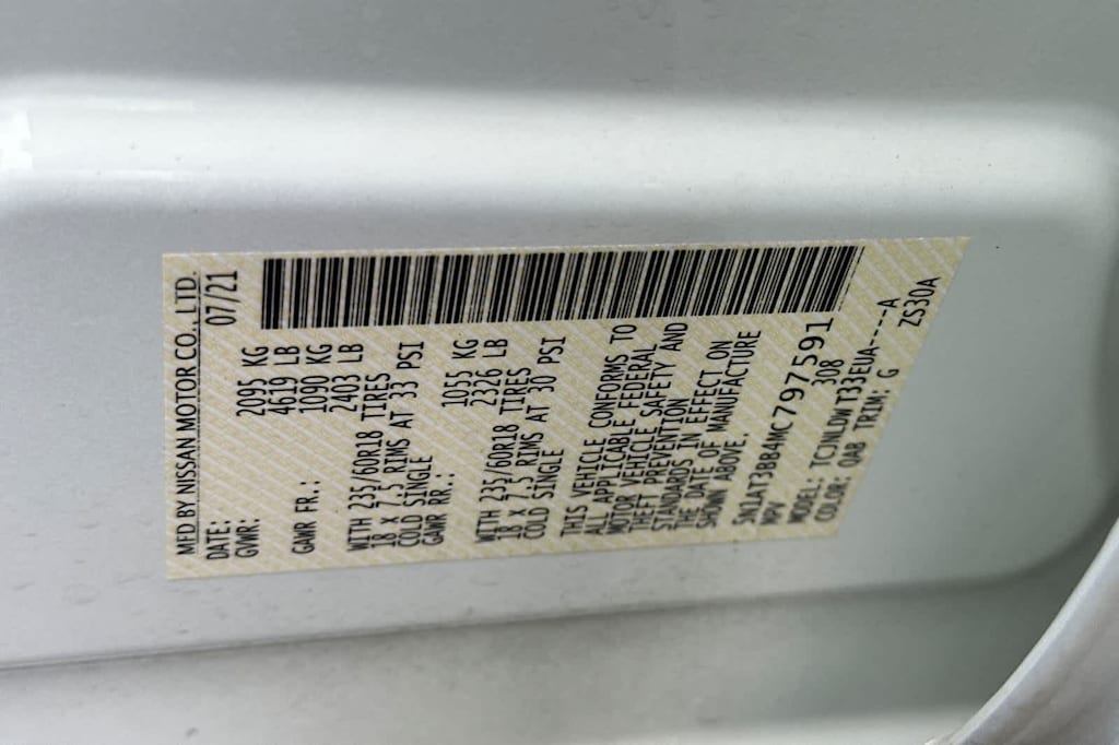 CHROME REAR BUMPER PROTECTOR. Nissan SV with Pearl White Tricoat exterior and Charcoal interior features a 4 Cylinder Engine with 181 HP at 6000 RPM*.