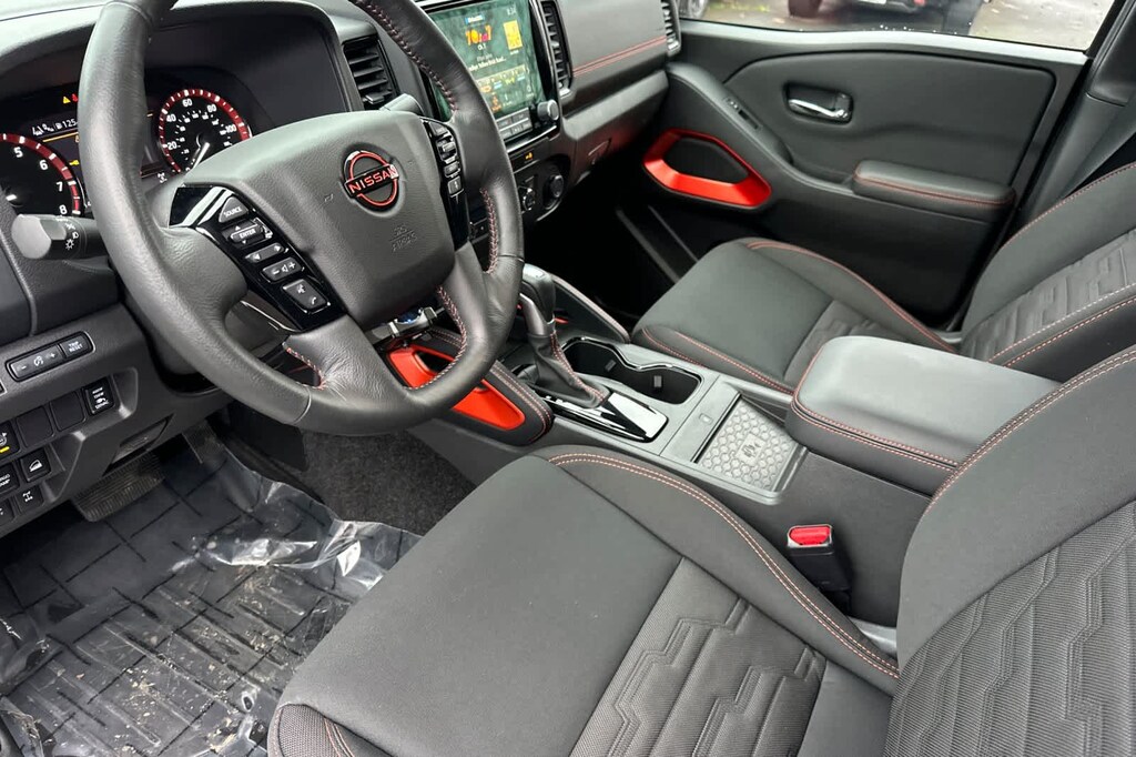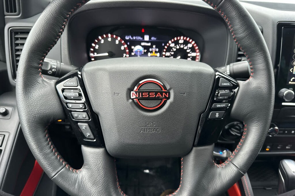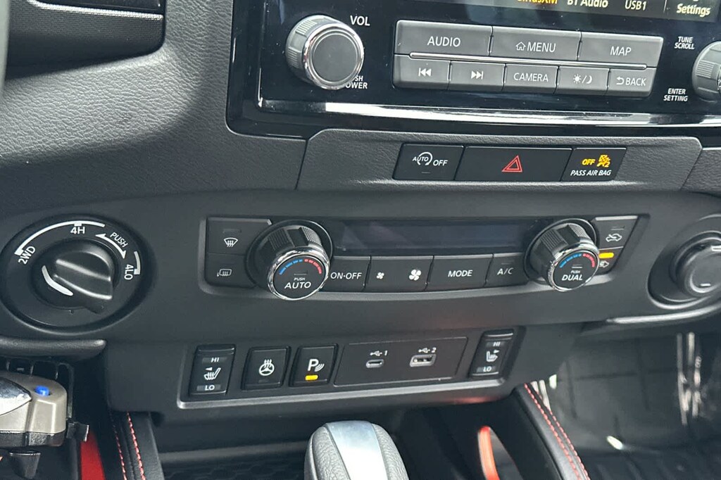 PRO CONVENIENCE PACKAGE Bed Under-Rail Lighting, Remote Engine Starter, 120V Power Outlet in Bed, Heated Front Seats, Intelligent Around View Monitor (I-AVM), Moving Object Detection (MOD) and off-road mode, Utili-Track System, 2 adjustable tie-down cleats, Spray-In Bedliner, Trailer Hitch w/Wiring Harness, VPC installed accessory, Heated Steering Wheel, Wireless Charging For Personal Devices, Heated Outside Mirrors, 120V Power Outlet in Rear Center Console, TECHNOLOGY PACKAGE Rear Sonar System, Rear Automatic Braking (RAB), High Beam Assist (HBA), Blind Spot Warning (BSW), Rear Cross Traffic Alert (RCTA), Intelligent Cruise Control (ICC), Lane Departure Warning (LDW), OFF-ROAD STYLE STEP RAILS. Nissan PRO-4X with Glacier White exterior and Charcoal w/Lava Red Stit interior features a V6 Cylinder Engine with 310 HP at 6400 RPM*.