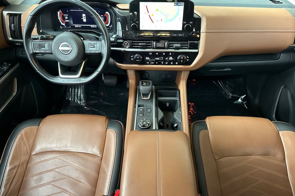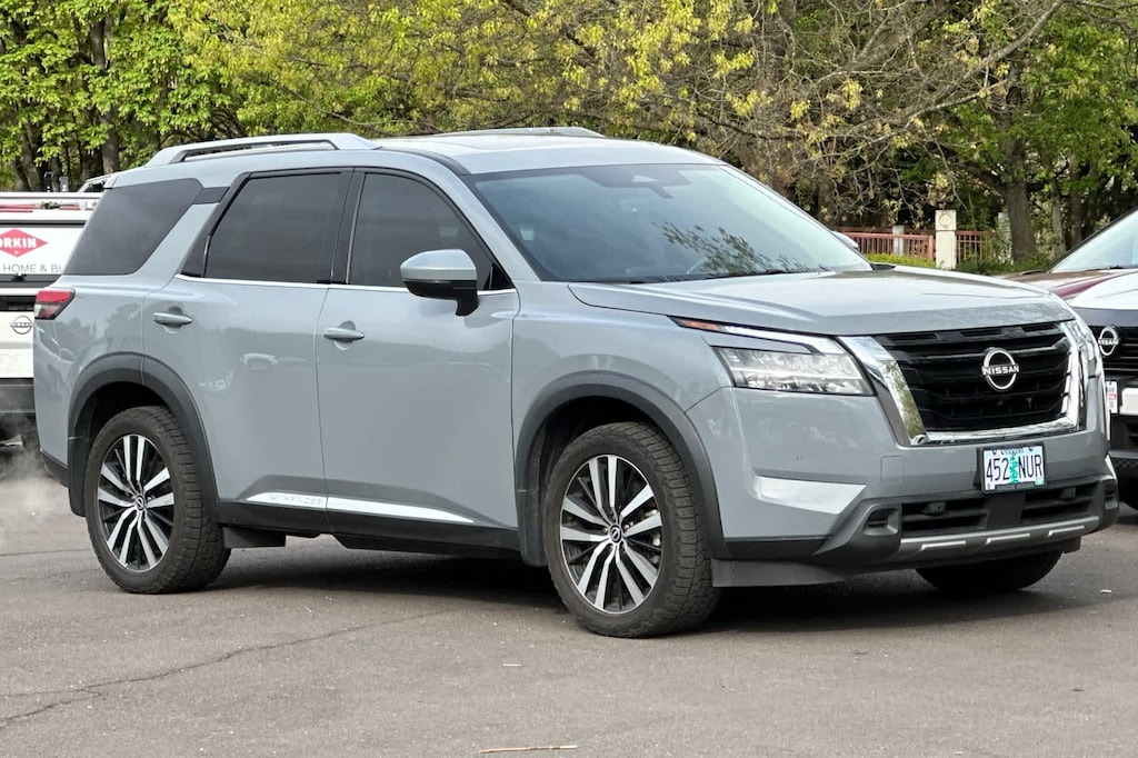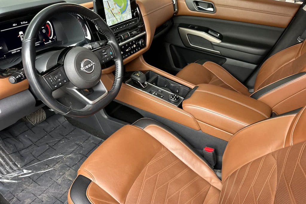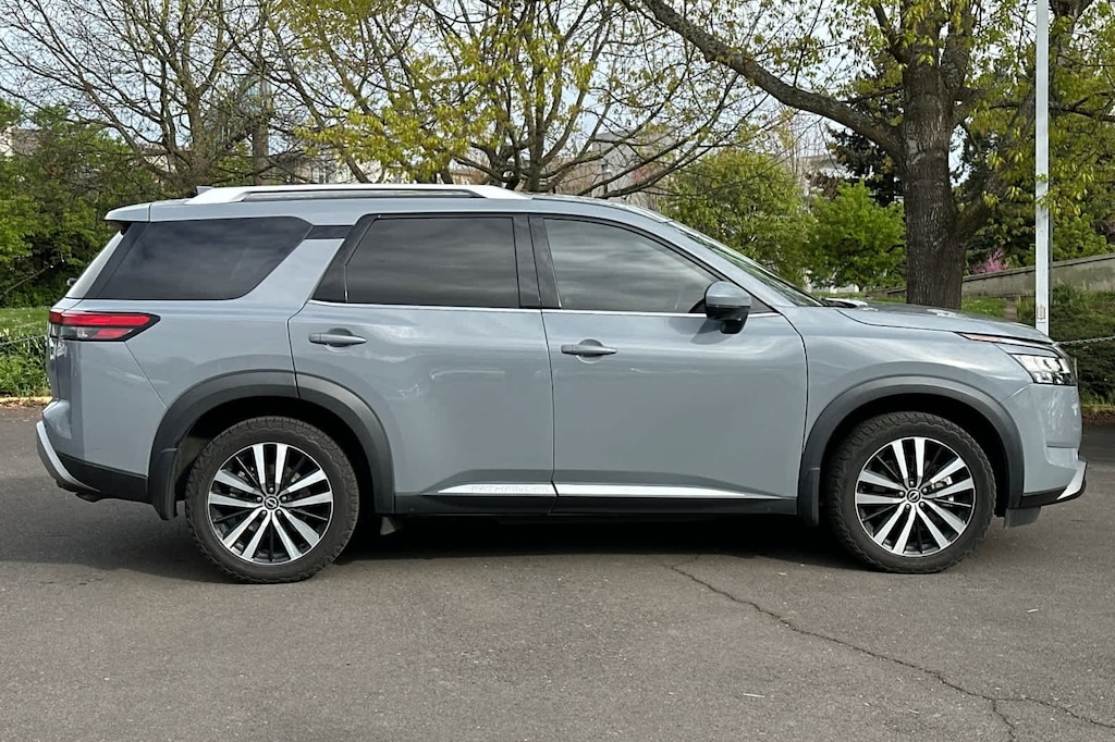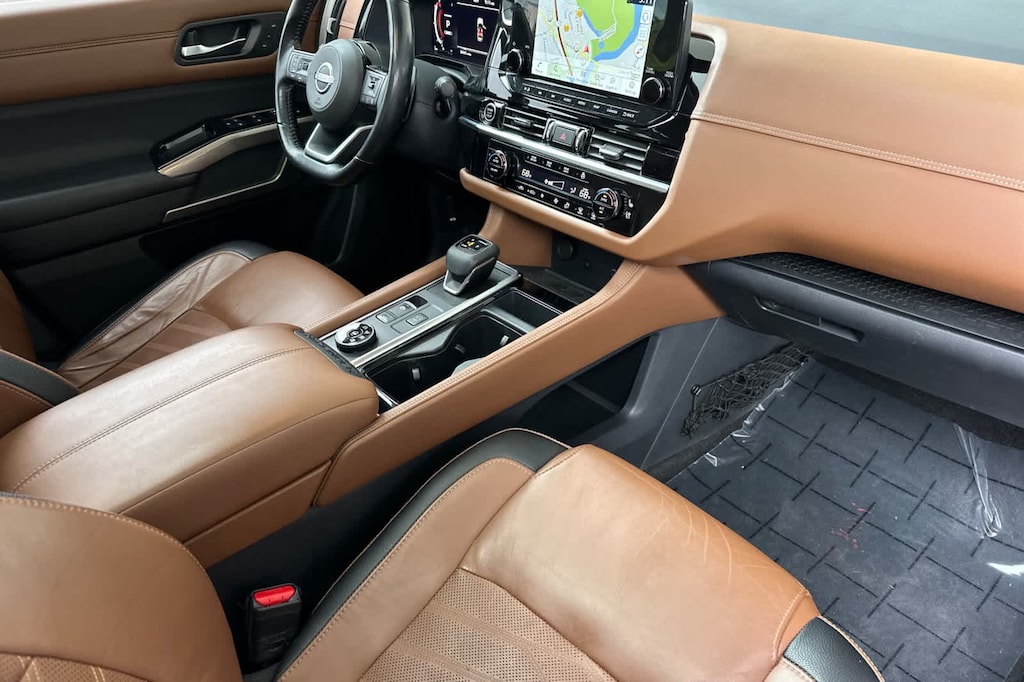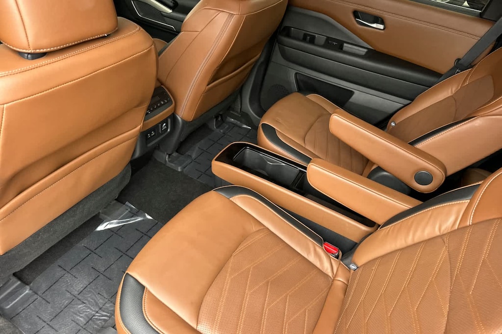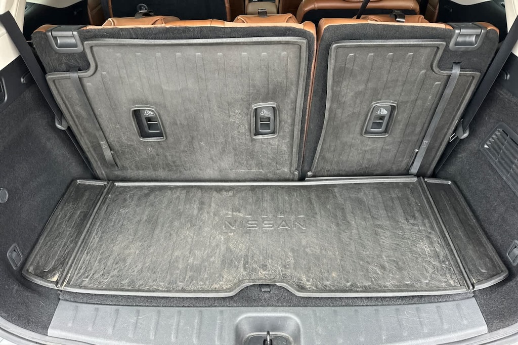 PLATINUM CAPTAIN CHAIRS PACKAGE 2nd-Row Captain Chairs, 2nd-Row Removable Center Console. Nissan Platinum with BOULDER GRAY PE exterior and CHESTNUT interior features a V6 Cylinder Engine with 284 HP at 6400 RPM*.