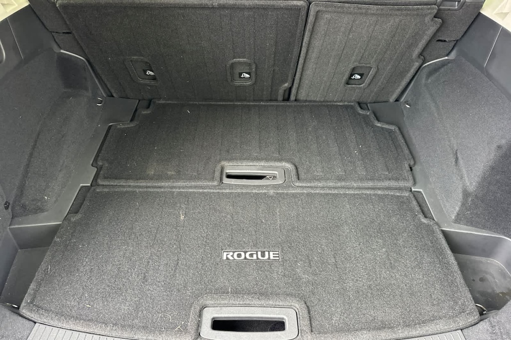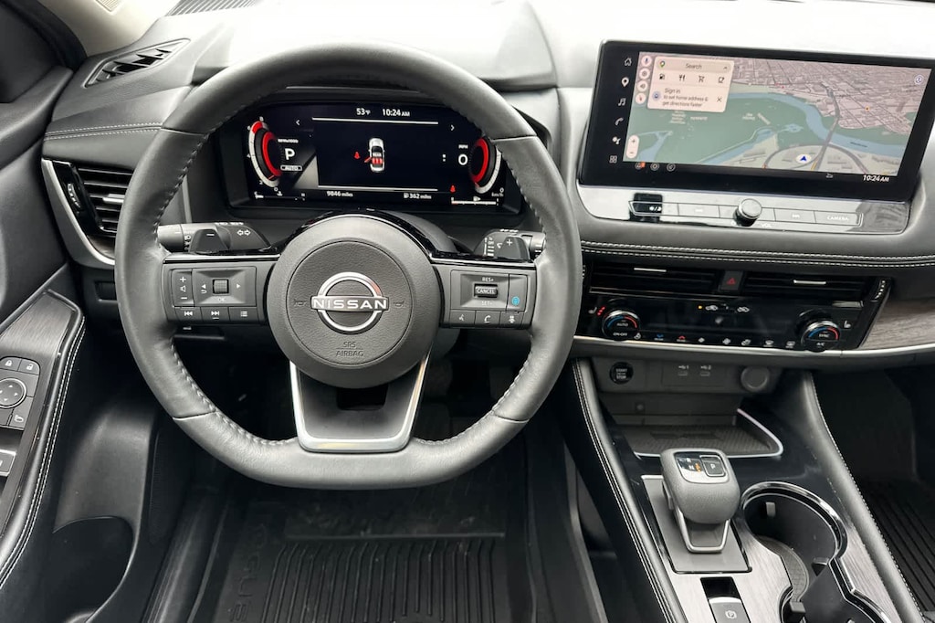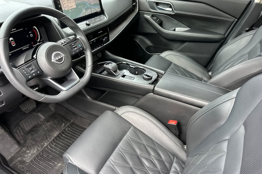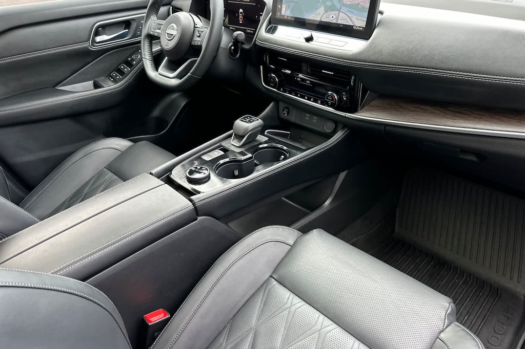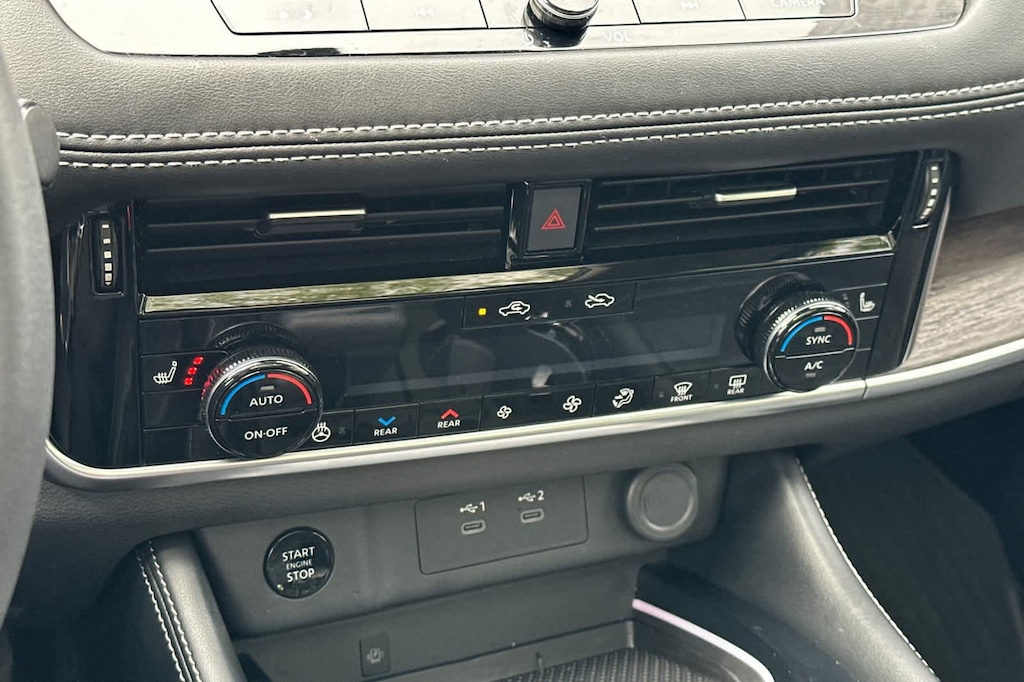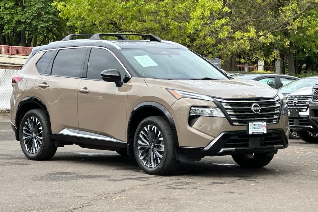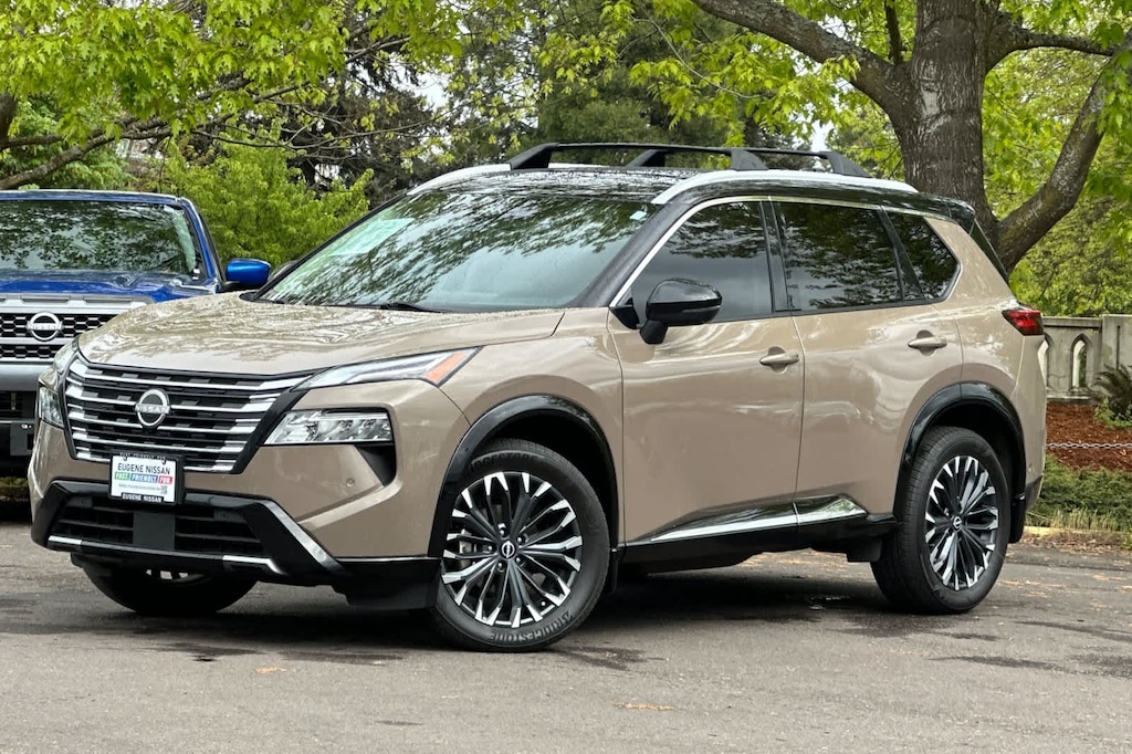 PLATINUM PREMIUM PACKAGE Rear Door Sunshades, Rear Heated Seats, Motion-Activated Power Liftgate, Tri-Zone Automatic Temperature Control, Head-Up Display. Nissan Platinum with Baja Storm Metallic/Super Black exterior and Charcoal interior features a 3 Cylinder Engine with 201 HP at 5600 RPM*.