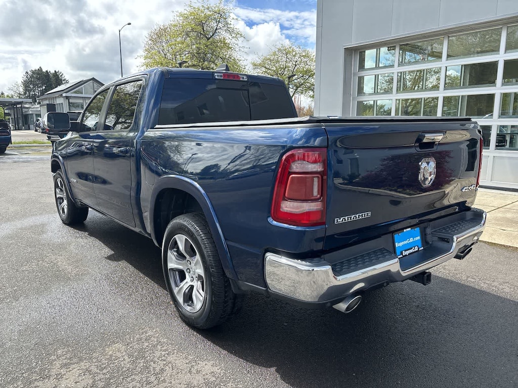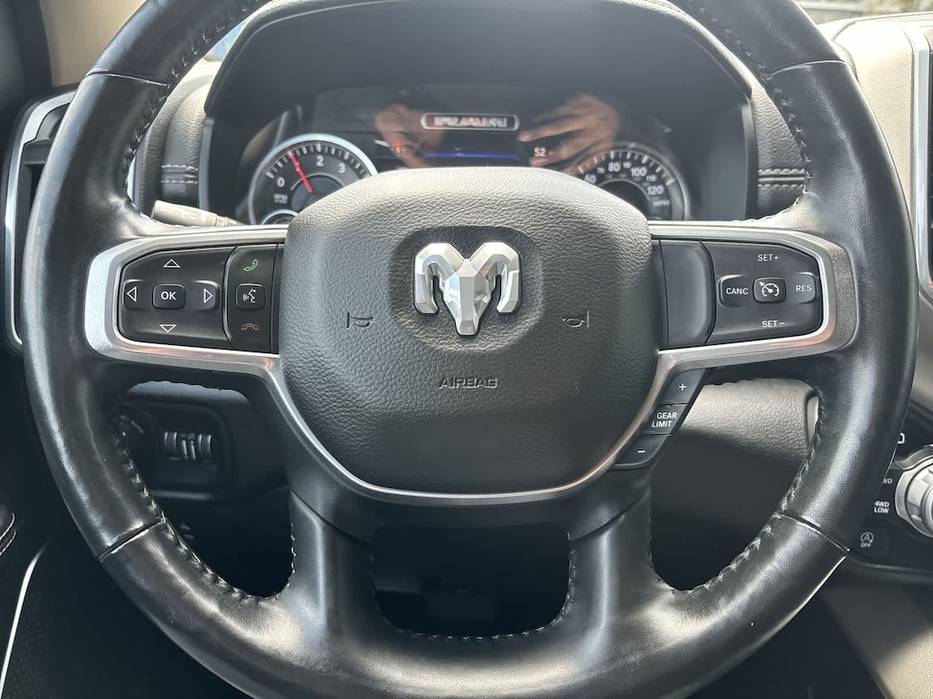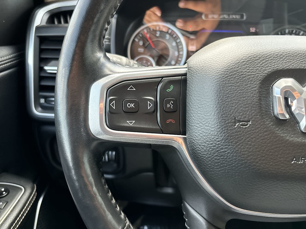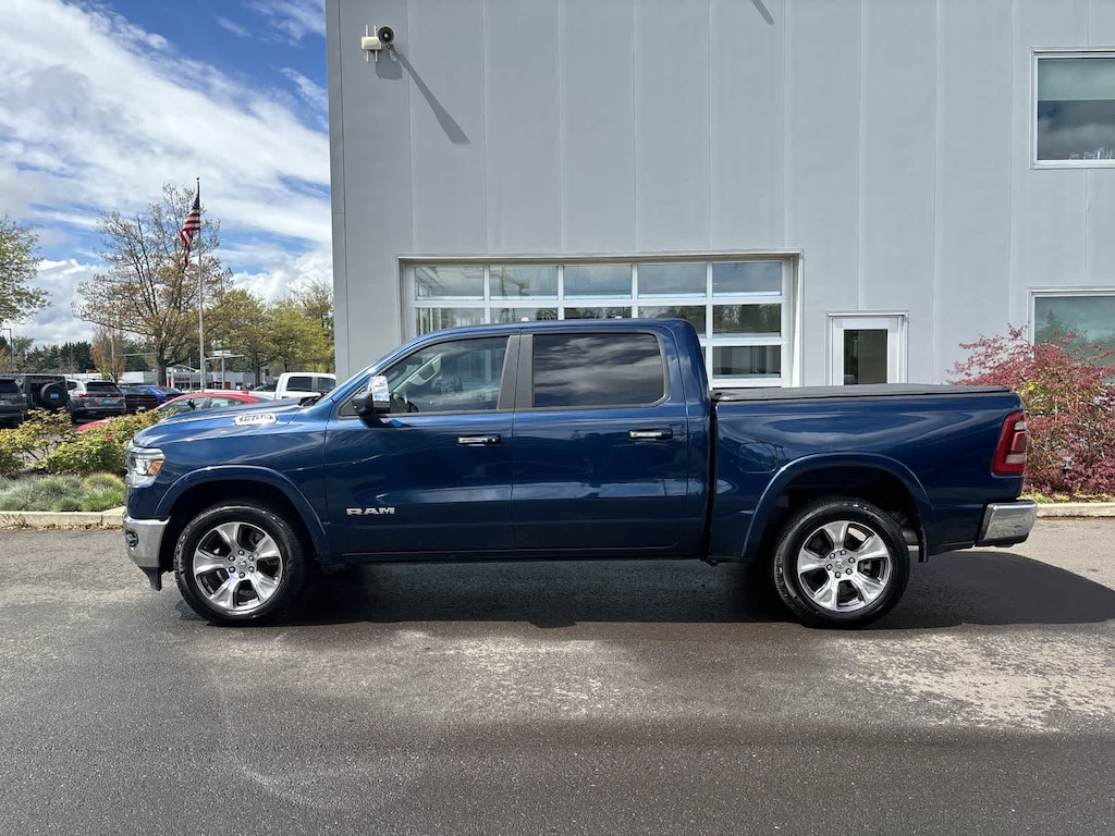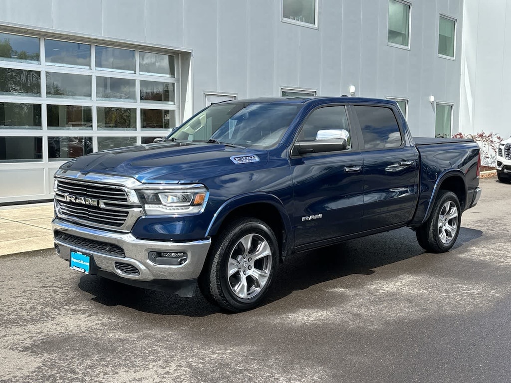 RADIO: UCONNECT 12 W/NAVIGATION SiriusXM Traffic Plus, USB Host Flip, Disassociated Touchscreen Display, HD Radio, For Details, Visit DriveUconnect.com, 1-Yr SiriusXM Guardian Trial, 12 Touchscreen Display, GPS Navigation, SiriusXM Travel Link, 4G LTE Wi-Fi Hot Spot, SiriusXM w/360L, LARAMIE LEVEL 1 EQUIPMENT GROUP Remote Tailgate Release, Auto High Beam Headlamp Control, Blind Spot & Cross Path Detection, Rain Sensitive Windshield Wipers, ParkSense Front/Rear Park Assist w/Stop, Tailgate Ajar Warning Lamp, Foam Bottle Insert (Door Trim Panel), Rear 60/40 Folding Split Recline Seat, ENGINE: 5.7L V8 HEMI MDS VVT ETORQUE Active Noise Control System, Heavy Duty Engine Cooling, GVWR: 7,100 lbs, Dual Rear Exhaust w/Bright Tips, Hemi Badge, 23 Gallon Fuel Tank, 18 Aluminum Spare Wheel, WHEELS: 20 X 9 PREMIUM PAINT/POLISHED Tires: 275/55R20 OWL All Season, BLACK, LEATHER TRIMMED BUCKET SEATS Bucket Seats, Full Length Upgraded Floor Console, ANTI-SPIN DIFFERENTIAL REAR AXLE, TRANSMISSION: 8-SPEED AUTOMATIC (8HP75). Ram Laramie with Patriot Blue Pearlcoat exterior and Black interior features a 8 Cylinder Engine with 305 HP at 6400 RPM*.