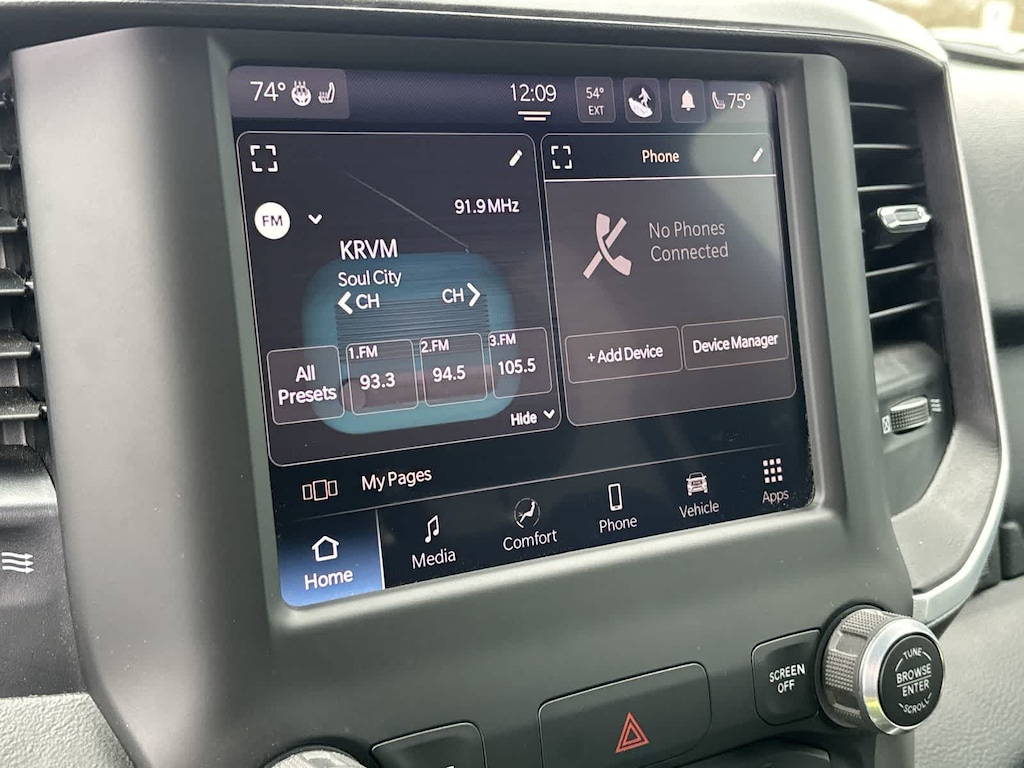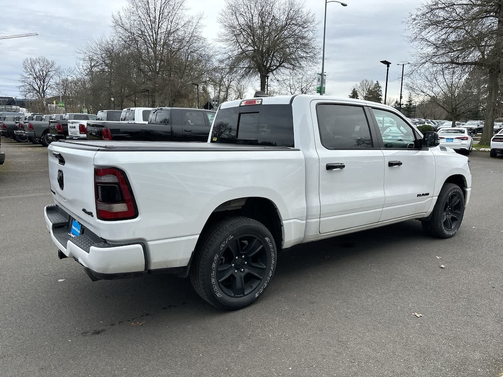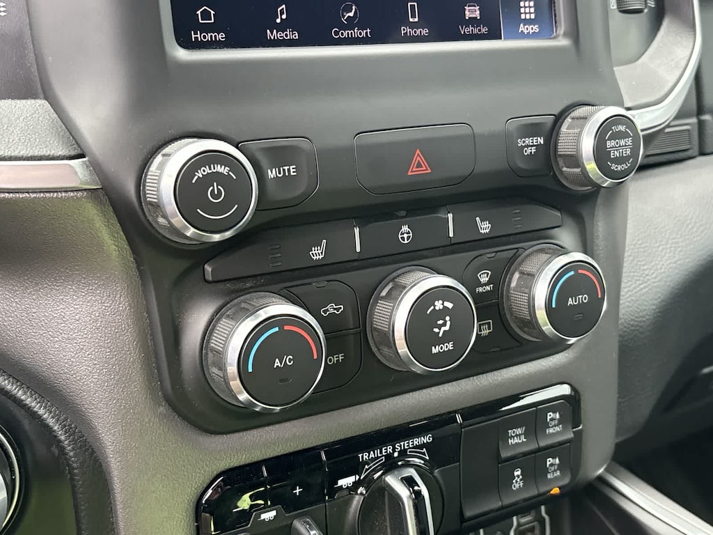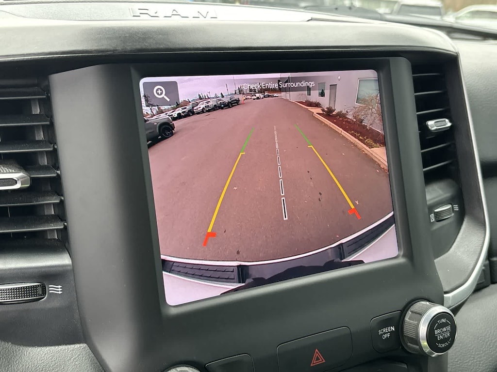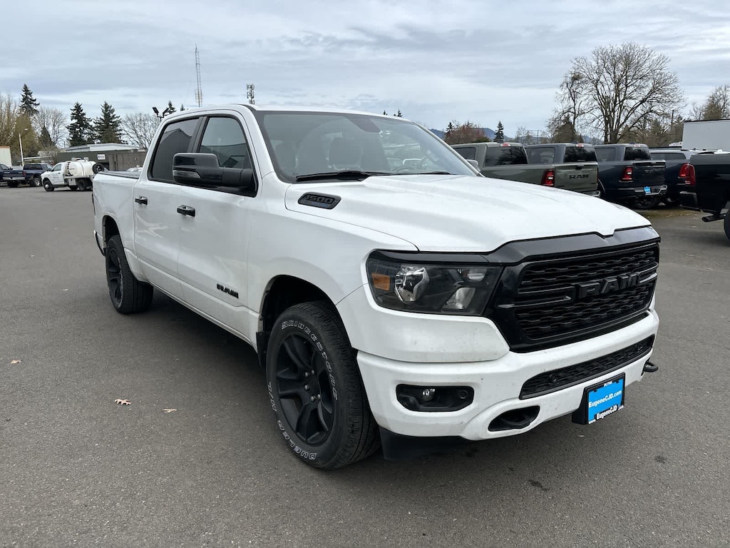 BIG HORN LEVEL 2 EQUIPMENT GROUP Google Android Auto®, USB Host Flip, Power Adjustable Pedals, For More Info, Call 800-643-2112, Front Fog Lamps, Glove Box Lamp, Media Hub w/2 Charge Only USBs, Heated Front Seats, 8.4 Touchscreen Display, Class IV Receiver Hitch, Security Alarm, Black Premium Power Mirrors, Apple CarPlay®, Remote Start System, SiriusXM Satellite Radio, 9 Amplified Speakers w/Subwoofer, 115V Auxiliary Power Outlet, Universal Garage Door Opener, Electric Shift On Demand Transfer Case, 2nd Row In Floor Storage Bins, Sun Visors w/Illuminated Vanity Mirrors, LED Footwell Lighting, Power 2-Way Driver Lumbar Adjust, Bluetooth® Handsfree Phone & Audio, Rear Window Defroster, Integrated Center Stack Radio, ParkSense Front/Rear Park Assist w/Stop, Rear View Auto Dim Mirror, Rear Power, ENGINE: 5.7L V8 HEMI MDS VVT ETORQUE Active Noise Control System, Heavy Duty Engine Cooling, Passive Tuned Mass Damper, Dual Rear Exhaust w/Bright Tips, HEMI Badge, 23 Gallon Fuel Tank, 18 Aluminum Spare Wheel, NIGHT EDITION Tires: 275/55R20 OWL All Season, Bridgestone Brand Tires, Accent Color Premium Power Mirrors, Exterior Mirrors w/Supplemental Signals, Black Headlamp Bezels, Exterior Mirrors Courtesy Lamps, Auto Dim Exterior Driver Mirror, Black Exterior Truck Badging, Anti-Spin Differential Rear Axle, Wheels: 20 x 9.0 Premium Paint/Polished, Accent Color Door Handles, Black Interior Accents, Dual Exhaust w/Black Tips, Power-Folding Mirrors, Body Color Front Bumper, Body Color Rear Bumper w/Step Pads, RAM Grille Badge - Black, Black Painted Exterior Mirrors Caps, BLIND SPOT & CROSS PATH DETECTION LED Taillamps, PROTECTION GROUP Transfer Case Skid Plate, Steering Gear Skid Plate, Front Suspension Skid Plate, Fuel Tank Skid Plate, Tow Hooks, TRANSMISSION: 8-SPEED AUTOMATIC (8HP75), BLACK, DELUXE CLOTH BUCKET SEATS Power 8-Way Driver Seat, Center Console Parts Module, Bucket Seats, Manual Adjust 4-Way Front Passenger Seat, Full Length Floor Console, Rear Center Armrest, Power 2-Way Driver Lumbar Adjust. Ram Big Horn with Bright White Clearcoat exterior and Black interior features a 8 Cylinder Engine with 395 HP at 5600 RPM*.