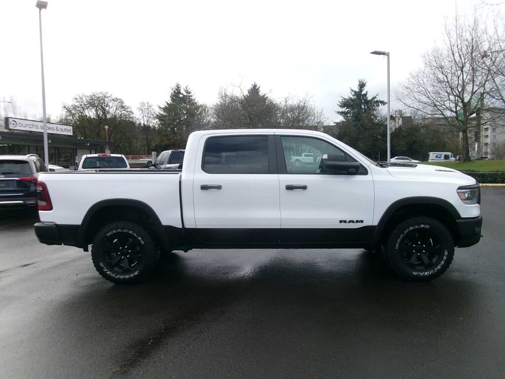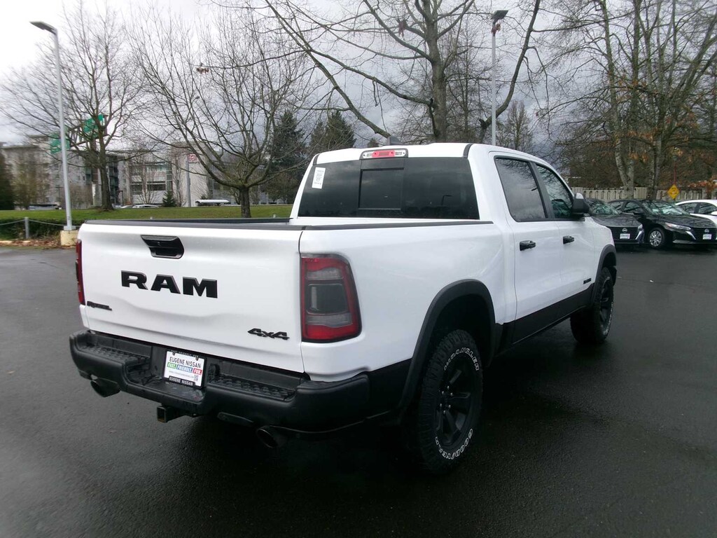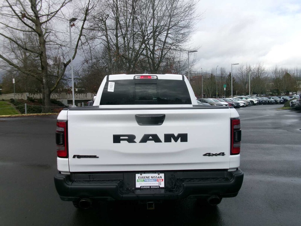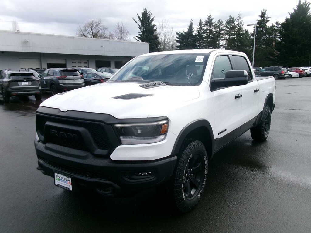 REBEL LEVEL 2 EQUIPMENT GROUP Rear Window Defroster, Rain Sensitive Windshield Wipers, ParkSense Front/Rear Park Assist w/Stop, Power Adjustable Pedals, Rear Power Sliding Window, Rear Dome w/On/Off Switch Lamp, 115V Auxiliary Rear Power Outlet, Media Hub w/2 Charge Only USBs, Power 8-Way Driver Seat, Auto Dim Exterior Driver Mirror, Rear Underseat Compartment Storage, Accent Color Door Handles, Heated Front Seats, Heated Steering Wheel, Foam Bottle Insert (Door Trim Panel), Security Alarm, Black Premium Power Mirrors, Remote Start System, Radio: Uconnect 5 Nav w/12.0 Display, Exterior Mirrors w/Supplemental Signals, Exterior Mirrors Courtesy Lamps, harman/kardon® 19 Speaker Premium Sound, 2-Door Passive Entry, Front Door Locks, Universal Garage Door Opener, Power-Folding Mirrors, 2nd Row, ENGINE: 5.7L V8 HEMI MDS VVT ETORQUE Active Noise Control System, Heavy Duty Engine Cooling, Passive Tuned Mass Damper, Dual Exhaust w/Black Tips, GVWR: 7,100 lbs, HEMI Badge, 23 Gallon Fuel Tank, NIGHT EDITION Black Front Bumper w/Black Plate, Wheels: 18 x 8.0 Gloss Black, Grille Surround 2 Black Texture 3 Black, RAM Grille Badge - Black, TRAILER TOW GROUP Mirror-Mounted Aux Reverse Lamps, Exterior Mirrors w/Supplemental Signals, Trailer Reverse Steering Control, Exterior Mirrors Courtesy Lamps, Trailer Tire Pressure Monitoring System, Trailer Light Check, Trailer Brake Control, Exterior Mirrors w/Memory, Mirror Clearance/Running Lights, Power-Folding Mirrors, DUAL-PANE PANORAMIC SUNROOF Premium Overhead Console, Dome Dual LED Reading Lamp, Overhead LED Lamps, BLIND SPOT & CROSS PATH DETECTION, CLASS IV RECEIVER HITCH, TRANSMISSION: 8-SPEED AUTOMATIC (8HP75). Ram Rebel with Bright White Clearcoat exterior and Black interior features a 8 Cylinder Engine with 395 HP at 5600 RPM*.