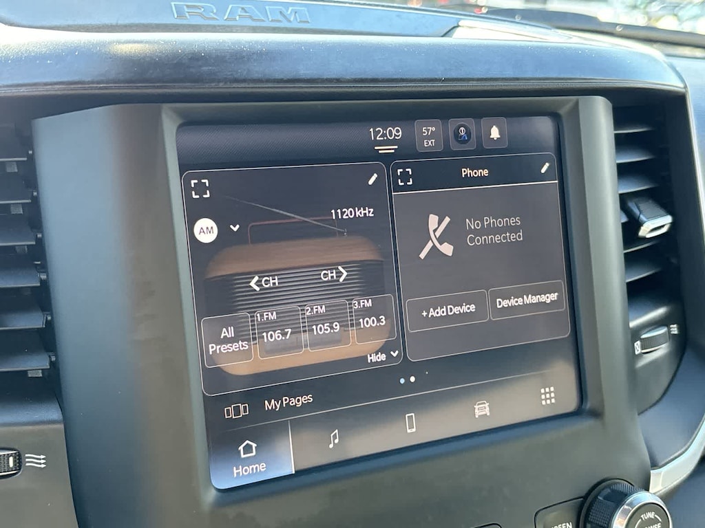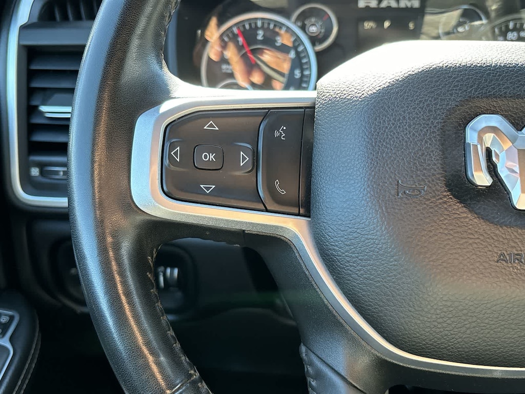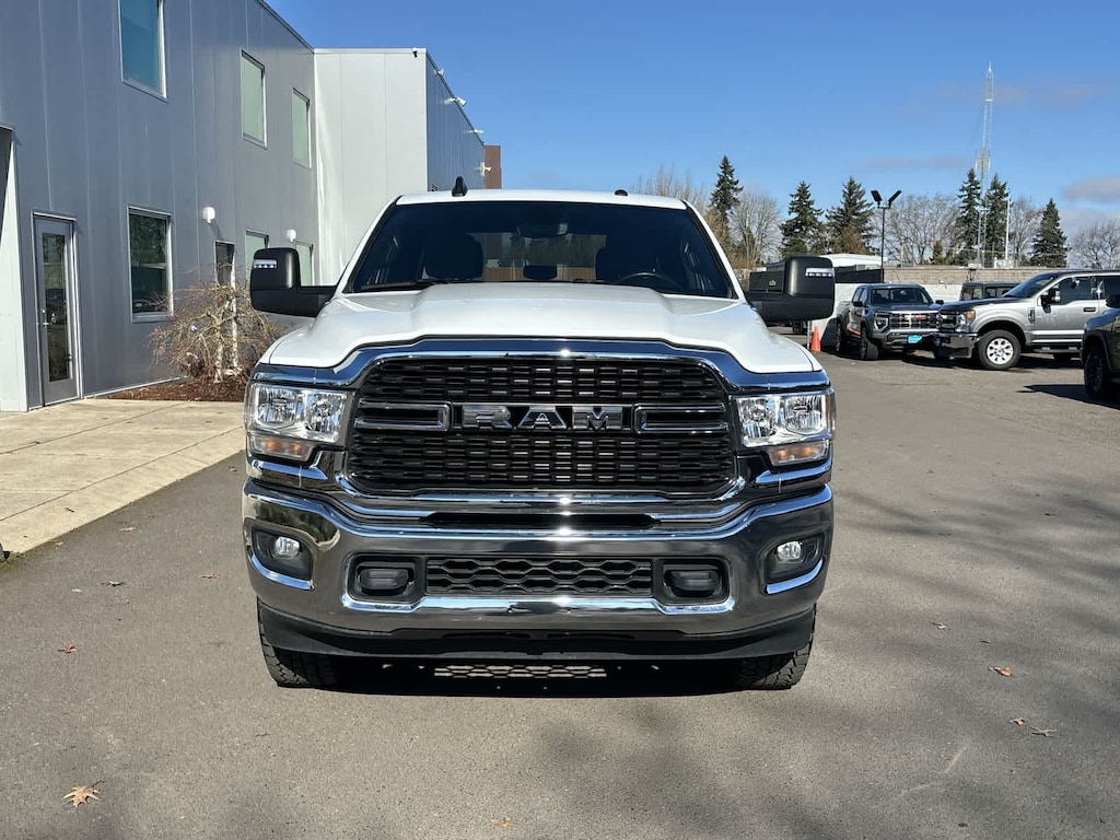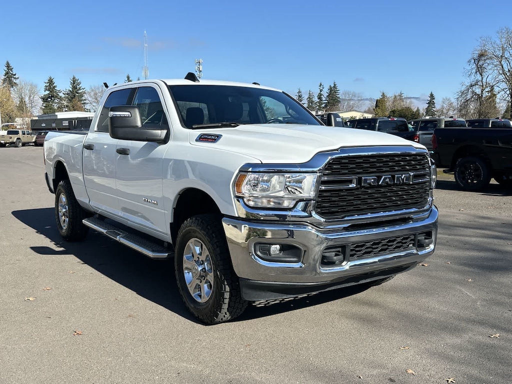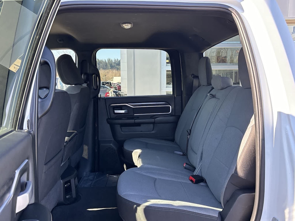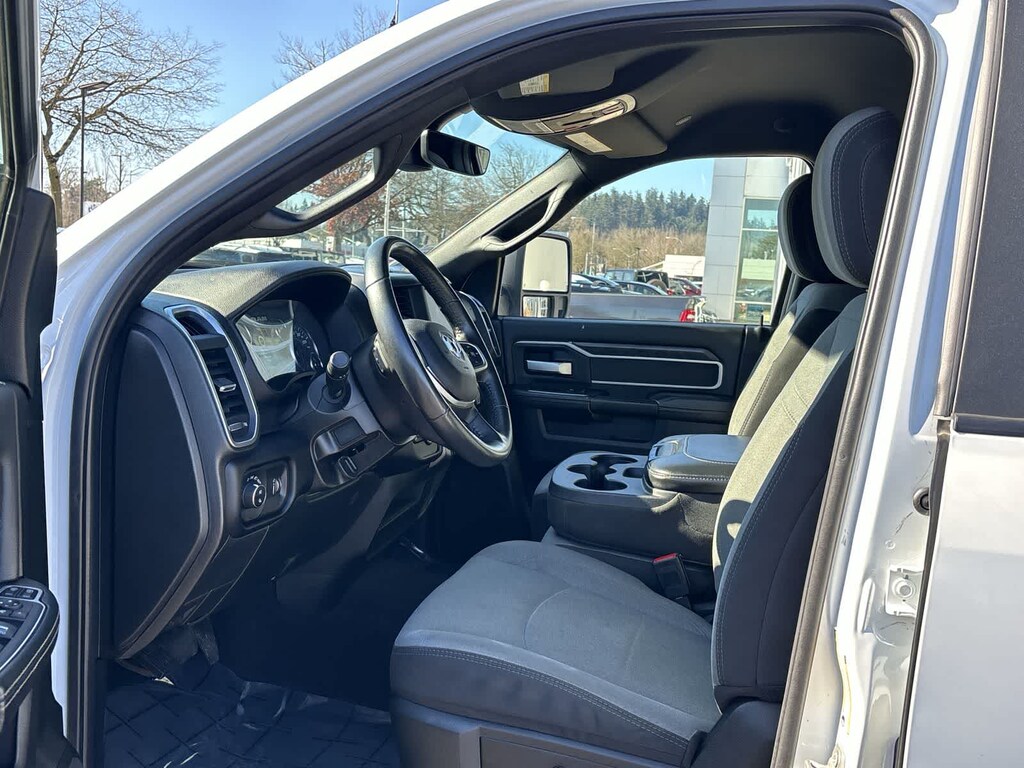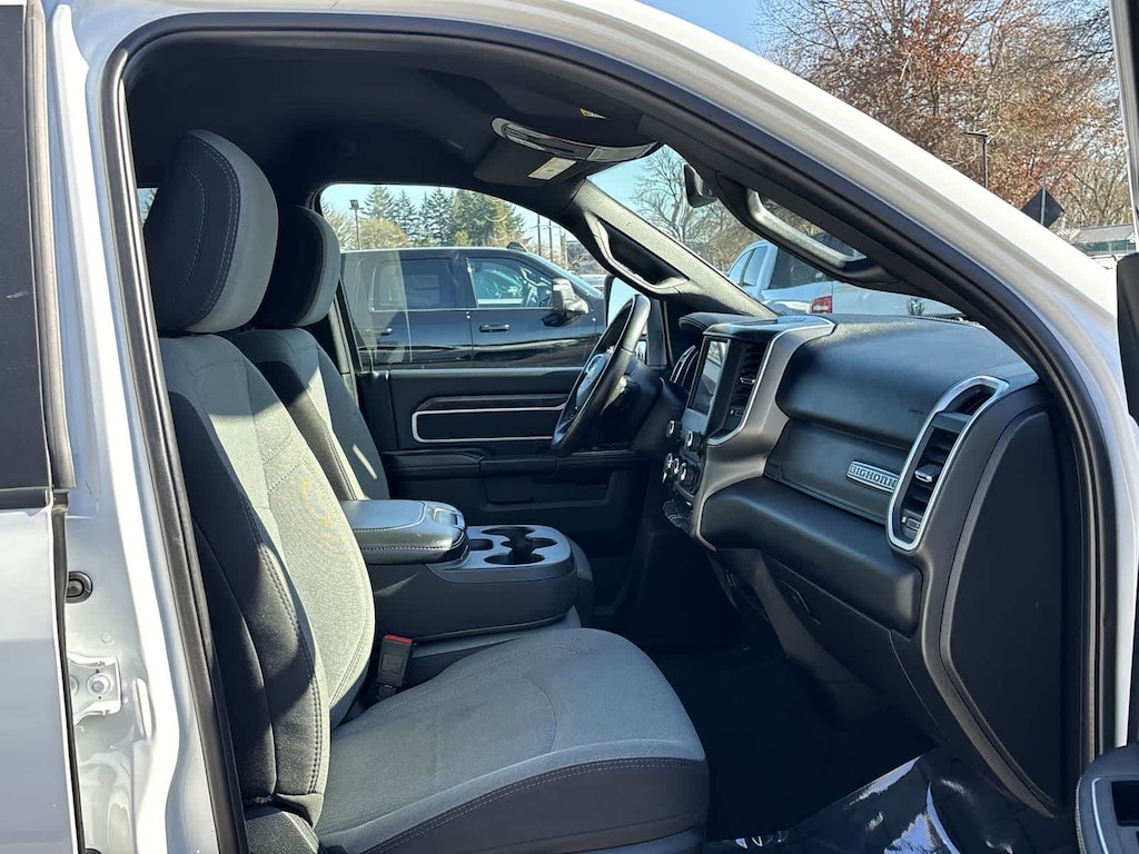 DIESEL GRAY/BLACK, PREMIUM CLOTH 40/20/40 BENCH SEAT Storage Tray, Rear 60/40 Folding Seat, Front Armrest w/Cupholders, Remote USB Port - Charge Only, Front Center Seat Cushion Storage, Manual Adjust 4-Way Front Passenger Seat, Power Adjust 8-Way Driver Seat, Front Seat Back Map Pockets, Power 2-Way Driver Lumbar Adjust, CHROME FLAT CAB-LENGTH SIDE STEPS, LEVEL 1 EQUIPMENT GROUP Google Android Auto®, For Details, Visit DriveUconnect.com, For More Info, Call 800-643-2112, Leather Wrapped Steering Wheel, Rear Dome w/On/Off Switch Lamp, Front Fog Lamps, Glove Box Lamp, Auto Power-Folding Mirrors, Footwell Courtesy Lamp, 4G LTE Wi-Fi Hot Spot, Mirror Running Lights, Radio: Uconnect 5 W w/8.4 Display, 8.4 Touchscreen Display, Foam Bottle Insert (Door Trim Panel), Wheels: 18 x 8.0 Polished Aluminum, Apple CarPlay®, Big Horn IP Badge, Power Adjustable Convex Aux Mirrors, Forward & Reverse Utility Lights, Locking Lower Glove Box, Selectable Tire Fill Alert, SiriusXM Satellite Radio, Power Heated Fold Telescope Mirrors, Exterior Mirrors w/Supplemental Signals, Steering Wheel Mounted Audio Controls, Exterior Mirrors Courtesy Lamps, Dual Glove, TRANSMISSION: 8-SPEED AUTO (8HP75-LCV) (STD), ENGINE: 6.4L V8 HEAVY DUTY HEMI MDS (STD). Ram Big Horn with Bright White Clearcoat exterior and Diesel Gray/Black interior features a 8 Cylinder Engine with 410 HP at 5600 RPM*.