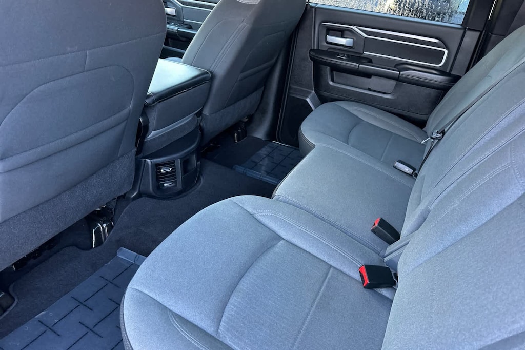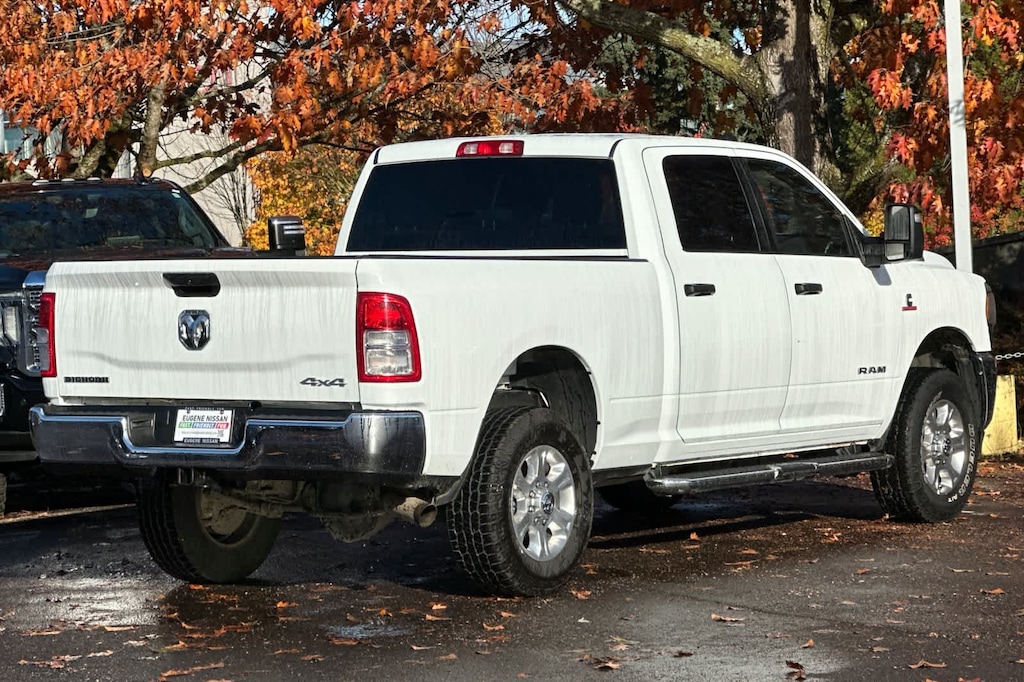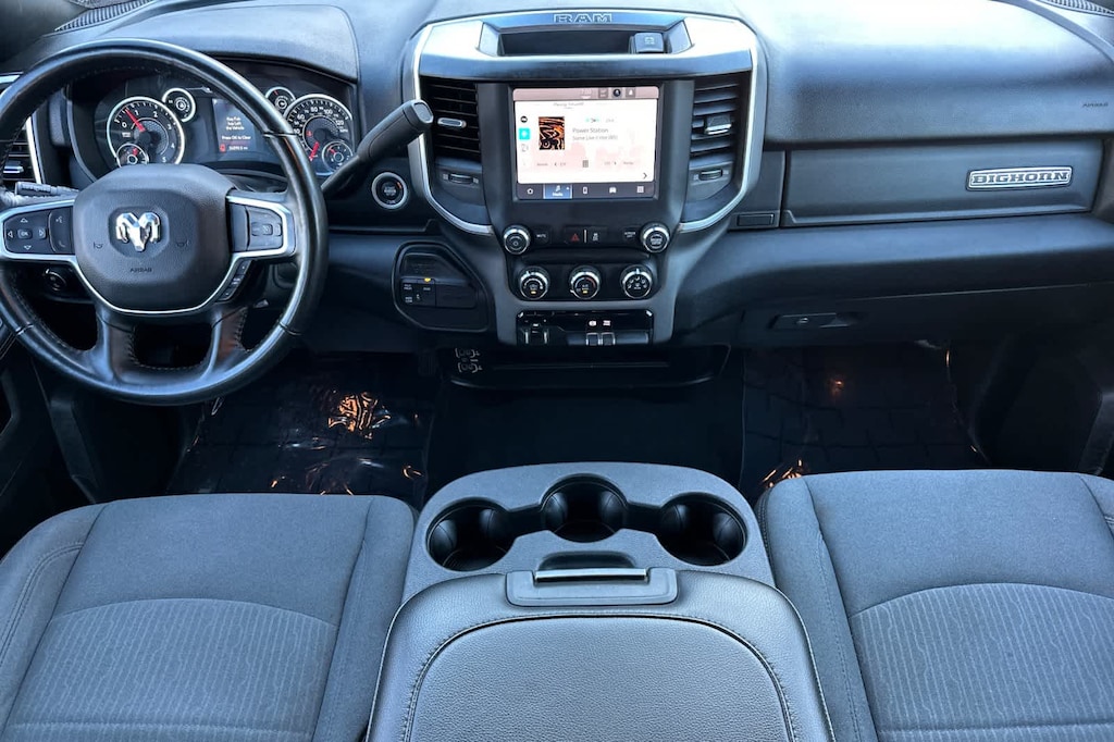 ENGINE: 6.7L I6 CUMMINS TURBO DIESEL Selective Catalytic Reduction (Urea), Dual 730 Amp Maintenance Free Batteries, Cummins Turbo Diesel Badge, Heavy Duty Engine Cooling, Tow Hooks, Diesel Exhaust Brake, Supplemental Heater, Front Bumper Sight Shields, Capless Fuel Fill w/o Discriminator, DIESEL GRAY/BLACK, PREMIUM CLOTH 40/20/40 BENCH SEAT Storage Tray, Rear 60/40 Folding Seat, Front Armrest w/Cupholders, Remote USB Port - Charge Only, Front Center Seat Cushion Storage, Manual Adjust 4-Way Front Passenger Seat, Power Adjust 8-Way Driver Seat, Front Seat Back Map Pockets, Power 2-Way Driver Lumbar Adjust, CHROME FLAT CAB-LENGTH SIDE STEPS, LEVEL 1 EQUIPMENT GROUP Google Android Auto®, For Details, Visit DriveUconnect.com, For More Info, Call 800-643-2112, Leather Wrapped Steering Wheel, Rear Dome w/On/Off Switch Lamp, Front Fog Lamps, Glove Box Lamp, Auto Power-Folding Mirrors, Footwell Courtesy Lamp, 4G LTE Wi-Fi Hot Spot, Mirror Running Lights, Radio: Uconnect 5 W w/8.4 Display, 8.4 Touchscreen Display, Foam Bottle Insert (Door Trim Panel), Wheels: 18 x 8.0 Polished Aluminum, Apple CarPlay®, Big Horn IP Badge, Power Adjustable Convex Aux Mirrors, Forward & Reverse Utility Lights, Locking Lower Glove Box, Selectable Tire Fill Alert, SiriusXM Satellite Radio, Power Heated Fold Telescope Mirrors, Exterior Mirrors w/Supplemental Signals, Steering Wheel Mounted Audio Controls, Exterior Mirrors Courtesy Lamps, Dual Glove, TRANSMISSION: 6-SPEED AUTOMATIC (68RFE). Ram Big Horn with Bright White Clearcoat exterior and Diesel Gray/Black interior features a Straight 6 Cylinder Engine with 410 HP at 5600 RPM*.