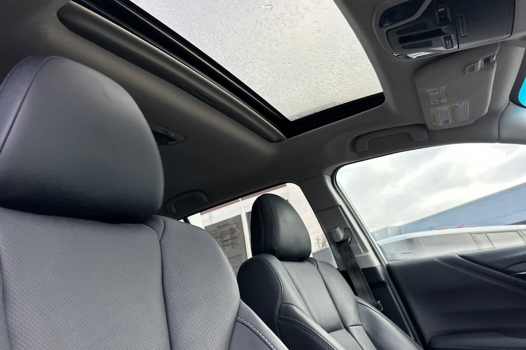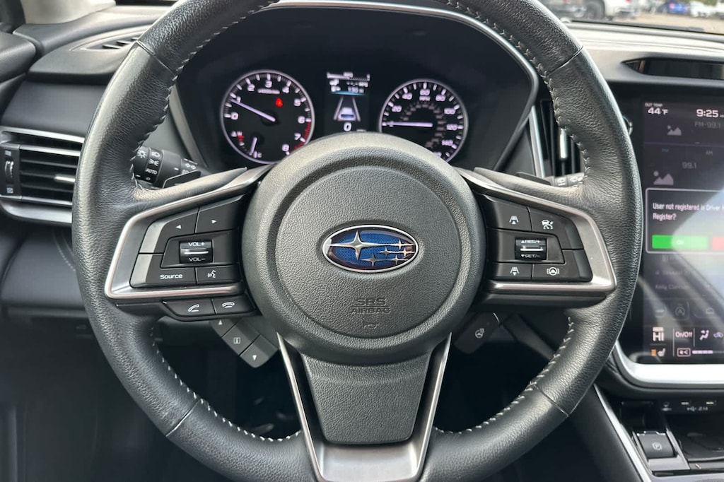 POWER MOONROOF & HSW & NAVIGATION SYSTEM Driver Focus (Distraction Mitigation System), Power Moonroof, Heated Steering Wheel, Radio: Subaru STARLINK 11.6 Multimedia Nav System, AM/FM stereo, HD Radio, voice activated controls and navigation, Bluetooth® audio streaming and hands-free phone connectivity w/SMS text messaging (applicable w/compatible cellphone), Near Field Communication (NFC), iPod control capability, SiriusXM All Access radio (subscription required), SiriusXM Traffic (subscription required), SiriusXM Travel Link (subscription required), smartphone integration: Android Auto®, CarPlay and STARLINK cloud applications, 3.5mm auxiliary input jack and dual USB input ports. Subaru Limited with Ice Silver Metallic exterior and Slate Black interior features a 4 Cylinder Engine with 182 HP at 5800 RPM*.