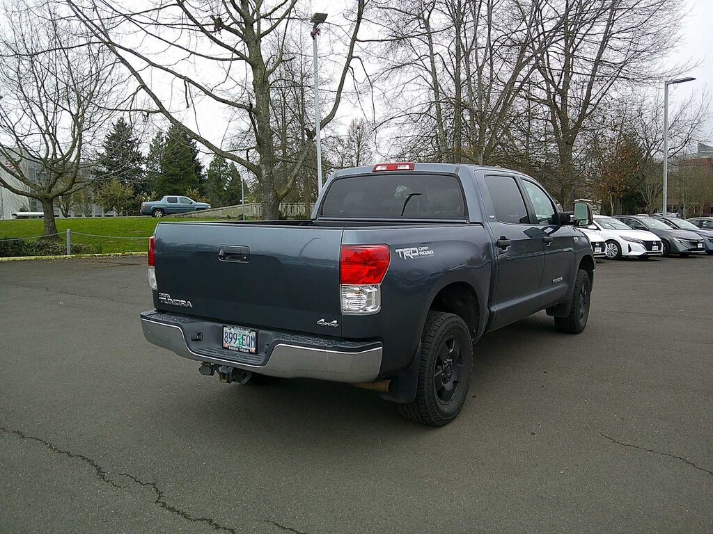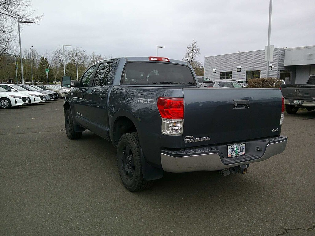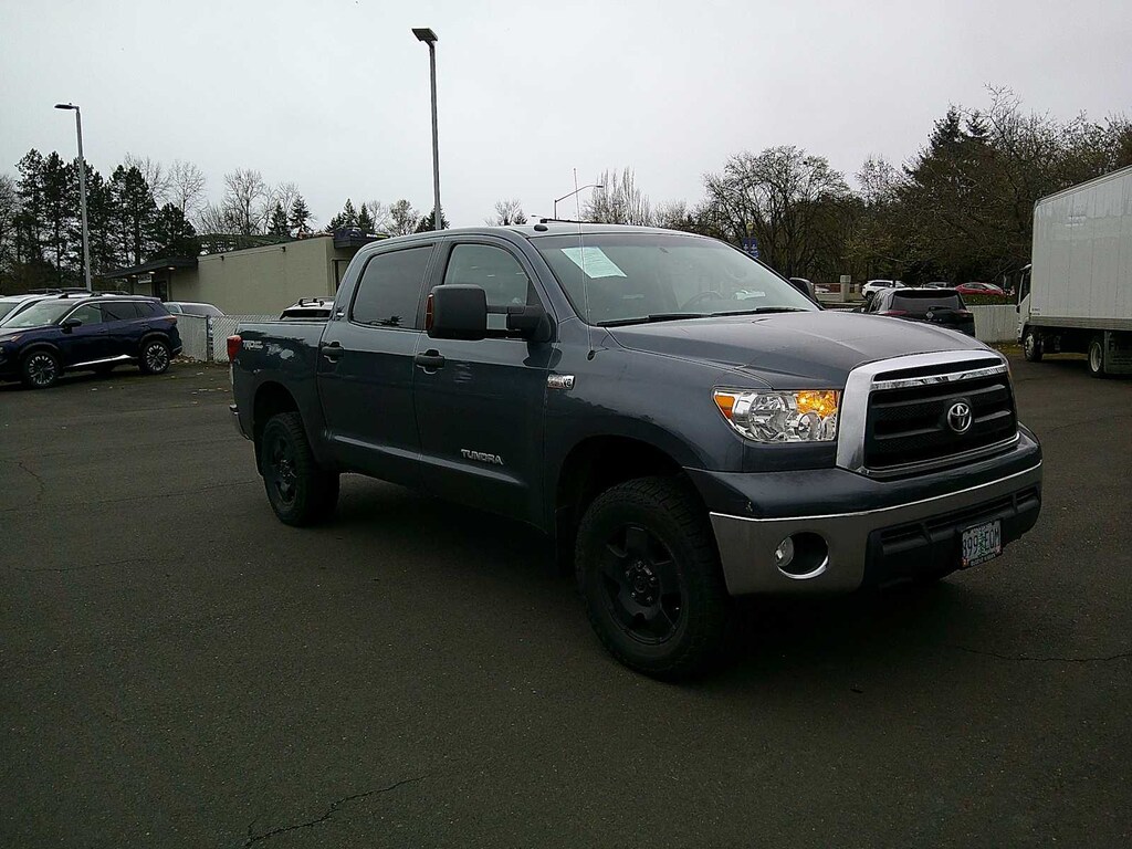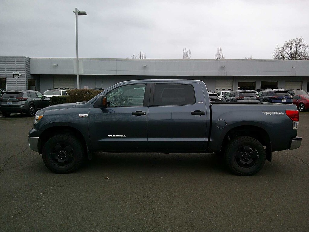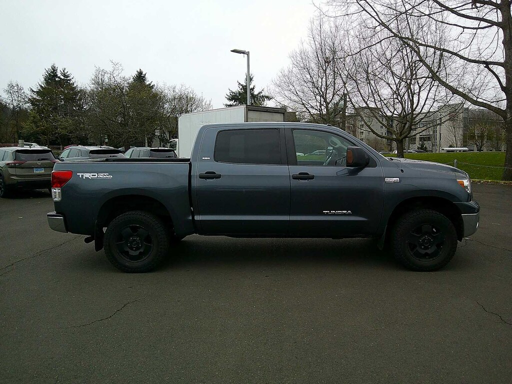 TRD OFF-ROAD PKG off-road suspension, Bilstein shocks, unique 18 alloy wheels, BF Goodrich OWL all terrain tires, TRD graphic, engine & fuel tank skid plates, JBL AM/FM STEREO W/6-DISC CD CHANGER MP3 capability, (12) speakers, integrated XM satellite radio, Bluetooth® capability, steering wheel mounted audio controls, aux & USB audio inputs w/iPod connectivity, PWR TILT & SLIDE MOONROOF, FRONT BUCKET SEATS 8-way pwr driver, 4-way adjustable passenger seat, adjustable headrests, tilt & telescoping steering wheel, center console shifter, center console w/laptop & file storage, BACKUP CAMERA DISPLAY auto-dimming interior mirror, compass, HomeLink, BEDLINER, BLACK PWR HEATED EXTERIOR MIRRORS. Toyota Tundra with Slate Metallic exterior and GRAPHITE interior features a 8 Cylinder Engine with 381 HP at 5600 RPM*.