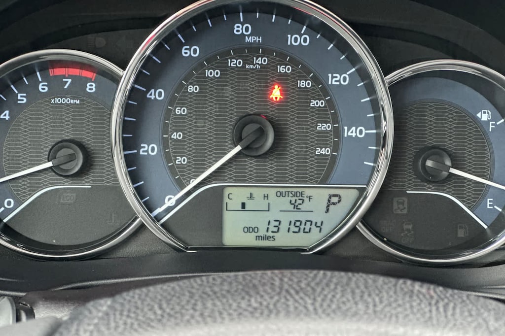 iPod/MP3 Input, Bluetooth®, CD Player. MP3 Player, Remote Trunk Release, Steering Wheel Controls, Child Safety Locks, Electronic Stability Control, Bucket Seats, Brake Assist. Toyota L with Super White exterior and STEEL GRAY interior features a 4 Cylinder Engine with 132 HP at 6000 RPM*.