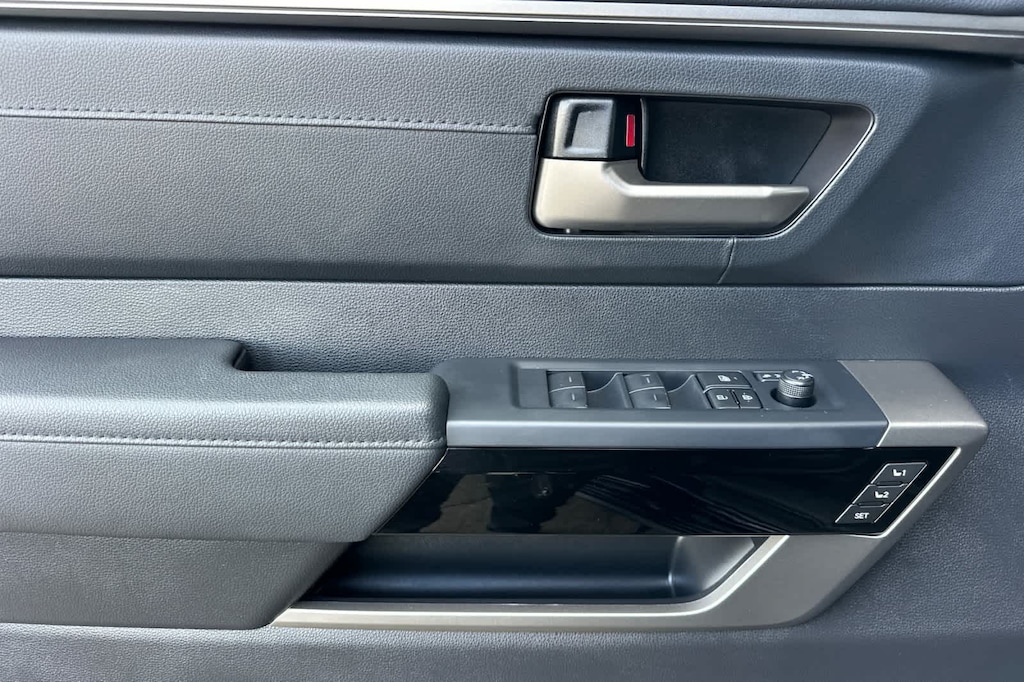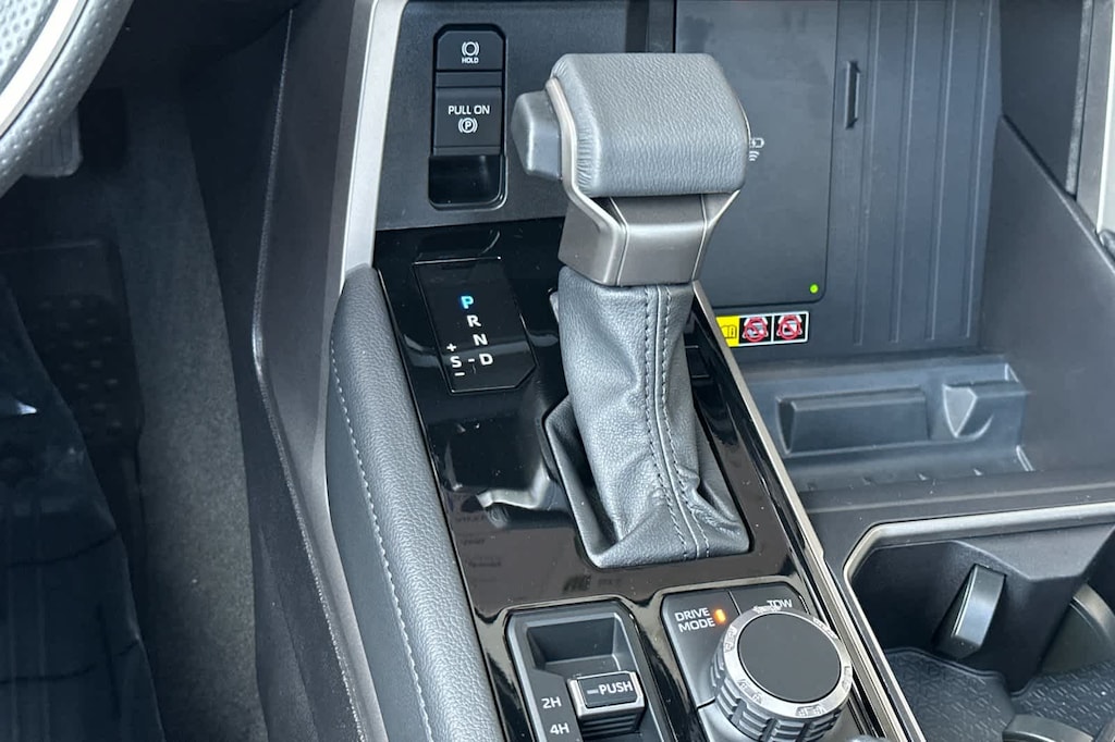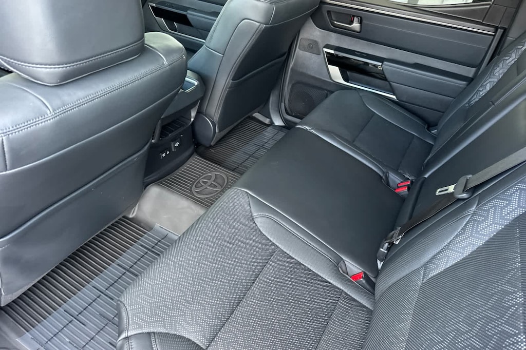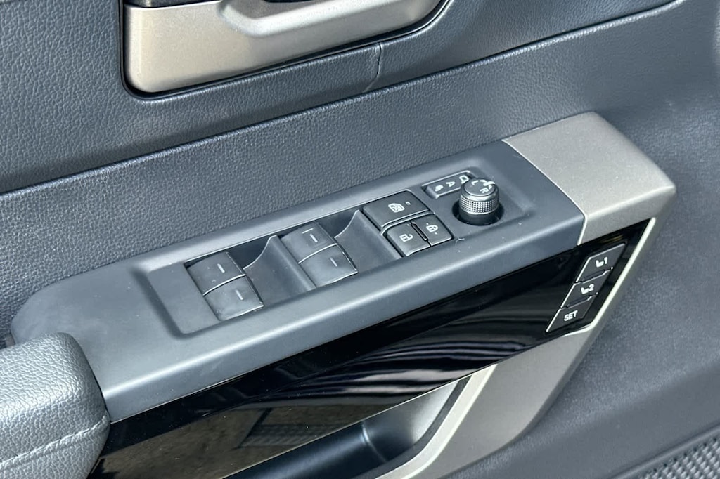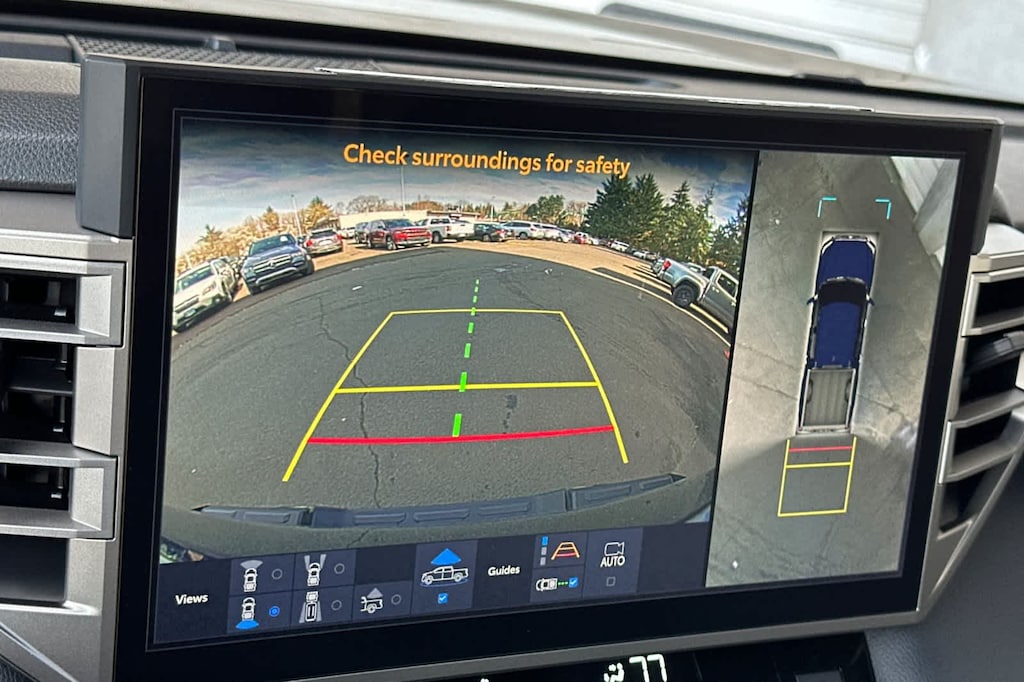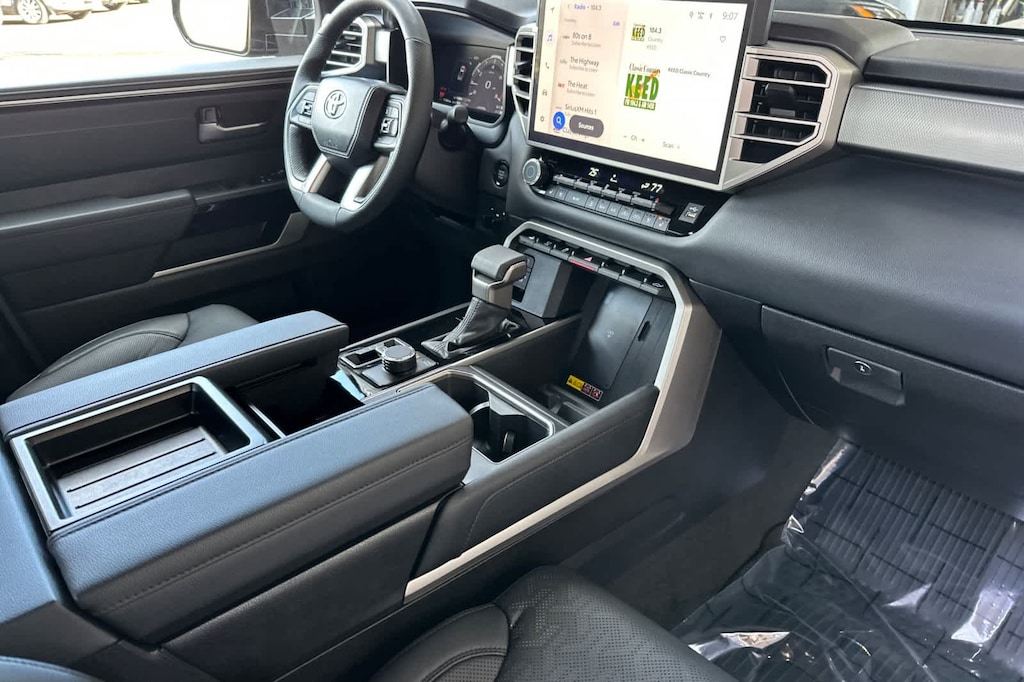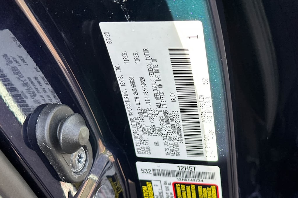 POWER TILT/SLIDE PANORAMIC SUNROOF power sunshade, PANORAMIC VIEW MONITOR PACKAGE Panoramic View Back Monitor, PREDATOR DROP STEP (TMS), NON-SKID SPRAY-ON BED LINER (TMS), JBL PREMIUM AUDIO 12 speakers, subwoofer and amplifier, NIGHTSHADE PACKAGE gloss black and body color door handles, gloss black window molding, gloss black tailgate handle, molded in color black over fenders, body color grille surround w/molded in color black grille, black Tundra badge and Limited badge, Wheels: 20 x 8J Matte Black TRD Sport Style, PREMIUM PACKAGE Towing Package, High Grade Full LED Headlamp, ALL WEATHER FLOOR LINERS (TMS), HEATED LEATHER STEERING WHEEL. Toyota Limited with Blueprint exterior and BLACK interior features a V6 Cylinder Engine with 389 HP at 5200 RPM*.